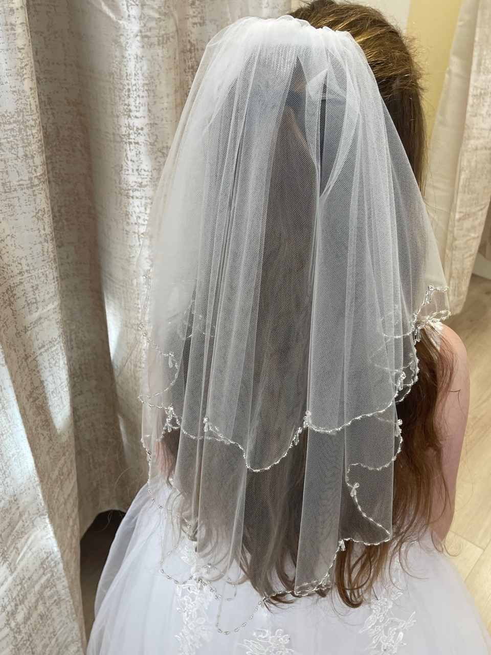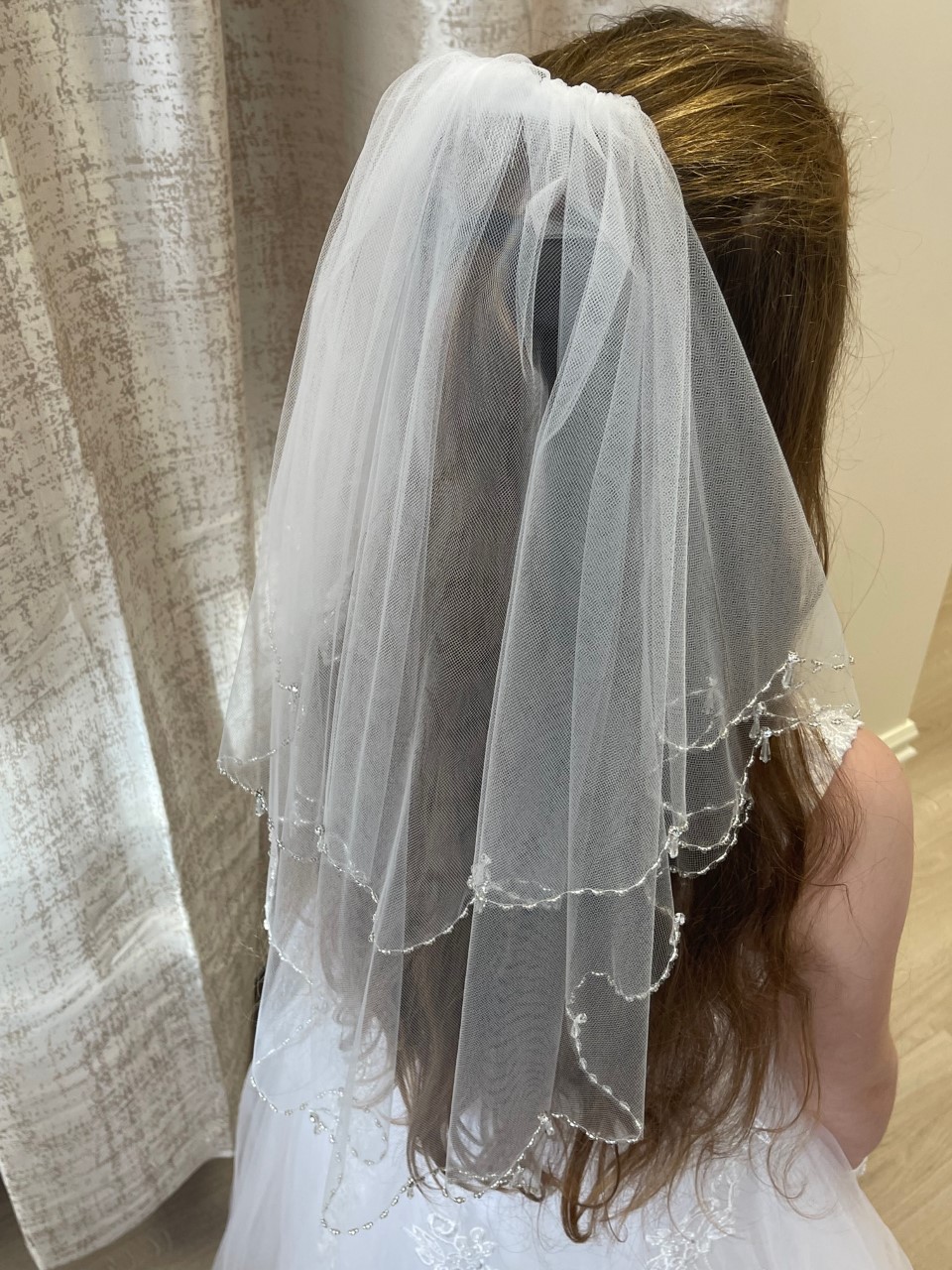Beautifully designed white communion veil with diamonte detail