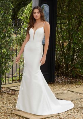 Home / Wedding Dresses / Morilee Wedding Dresses / The Other White Dress Wedding Dresses / 12146 Gia - Morilee Wedding DressA plunging neckline and an open low back make our Gia designer wedding dress a sultry stunner. The stretch Larissa satin fit and flare hugs the body with unique seams on the bodice for subtle dimension.