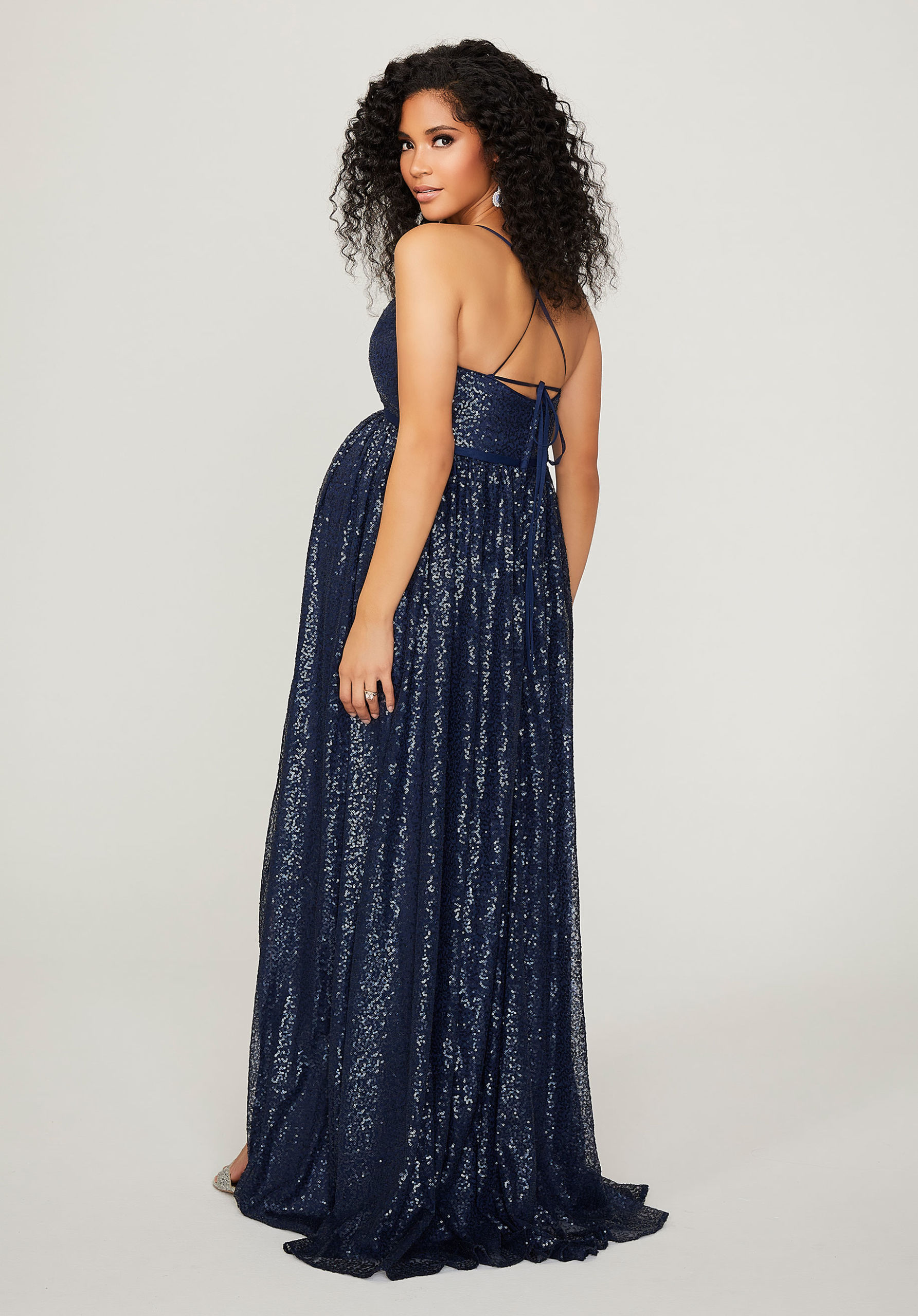 Home / Bridesmaids / Bridesmaids Dresses / 14104 Morilee Bridesmaids Dress - MaternityCaviar mesh maternity bridesmaid dress with scoop neckline, front skirt slit, spaghetti straps, and a strappy back.