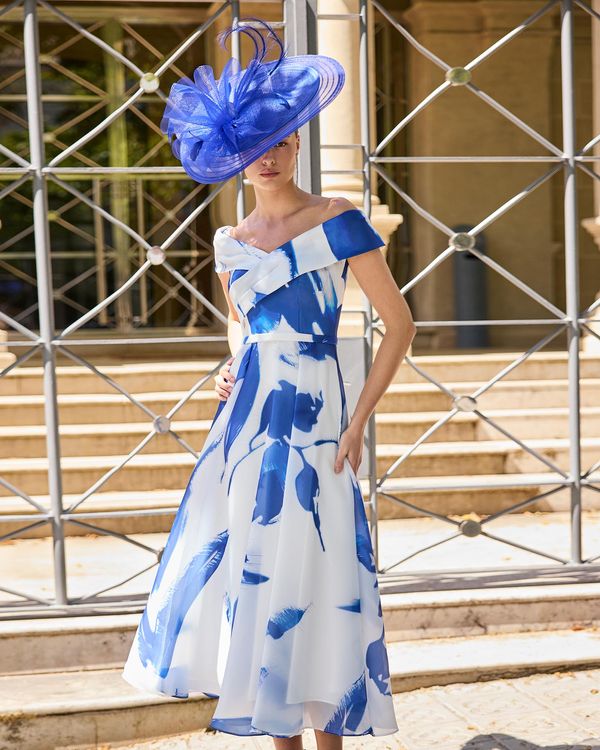 Elegant with a bold, contemporary edge, this dress is a standout choice for modern occasion dressing. Crafted in lightweight silk organza, this design features an eye-catching cobalt blue abstract print set against a soft white base.