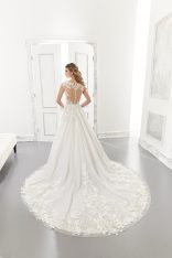 Home / Wedding Dresses / Morilee Wedding Dresses / Main Collection Wedding Dresses / 2173 Agatha Wedding Dressesresh, feminine, and ultra romantic, the Agatha wedding gown features frosted embroidered Lace appliqués on a Tulle, A-Line ball gown. The V-neckline and sheer yoke makes way to the gorgeous illusion back trimmed in covered buttons. A wide hemline border trims the sheer train.