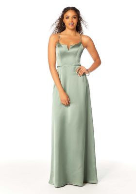 Home / Bridesmaids / Bridesmaids Dresses / 21806 Morilee Bridesmaid DressLovely silky satin bridesmaid dress has a cool v-notch neck bodice with contouring seams and a banded waist. Our favorite part is the lovely illusion back with leafy details. Shown in Moss