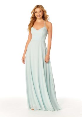Home / Bridesmaids / Bridesmaids Dresses / 21811 Morilee Bridesmaid DressSimplistic chiffon bridesmaid dress has a wide v-neckline with spaghetti straps that create a halter effect in the back on an effortless A-line silhouette. Shown in Sea Glass