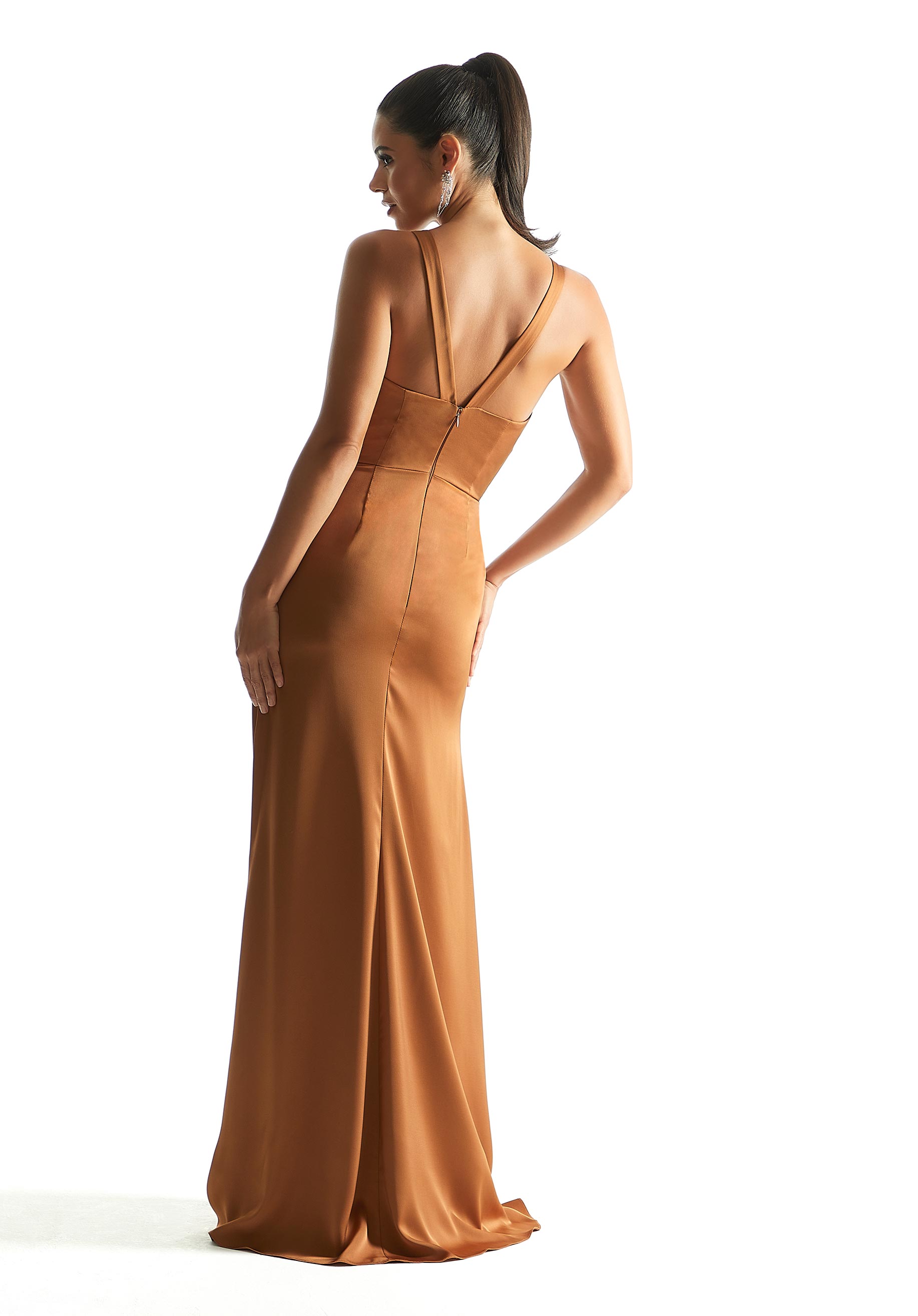 Home / Bridesmaids / Bridesmaids Dresses / 21857 Morilee Bridesmaids DressElegant bridesmaid dress has a soft glow in luxe satin with an understated v-neckline on a figure-flattering sheath silhouette. The straps create a cool v-shape in the back for a chic geometric look, while the front skirt slit allows for a sultry pop of leg.