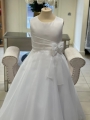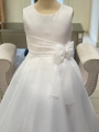 Beautiful organza is what makes this communion dress stand out, a plain dress with a beautiful bow to one side. Modelled by Lily
