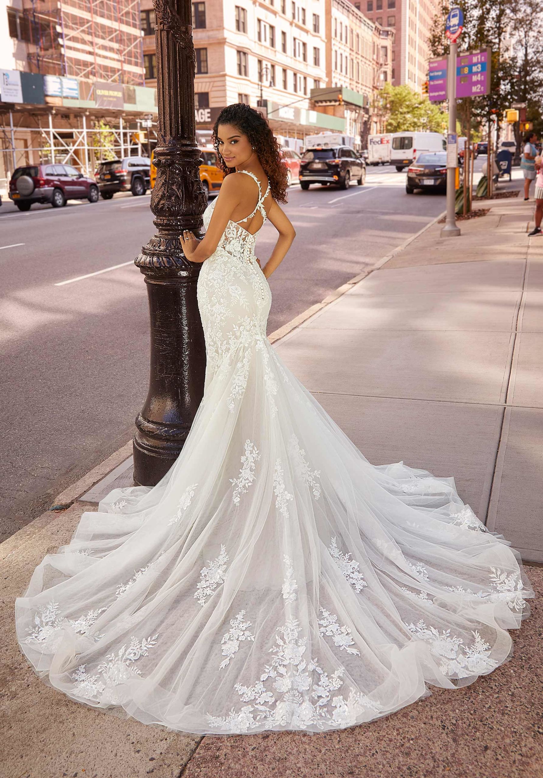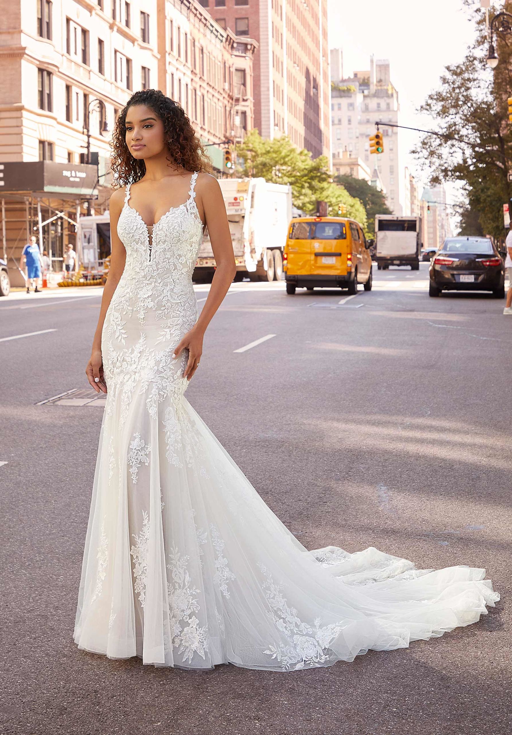 Home / Wedding Dresses / Morilee Wedding Dresses / Main Collection Wedding Dresses / 2517 Jessica Wedding DressTraditional mermaid has stunning allover frosted floral lace appliqués with a sculptured neckline and strappy back.