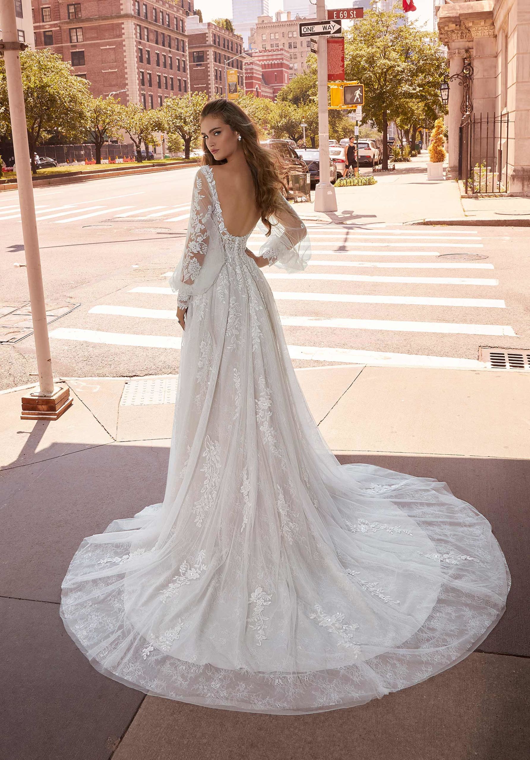 Home / Wedding Dresses / Morilee Wedding Dresses / Main Collection Wedding Dresses / 2518 Josephine Wedding DressBillowing A-line has a scoop neck bodice with beaded lace appliqués and detachable bishop sleeves over romantic Chantilly lace.