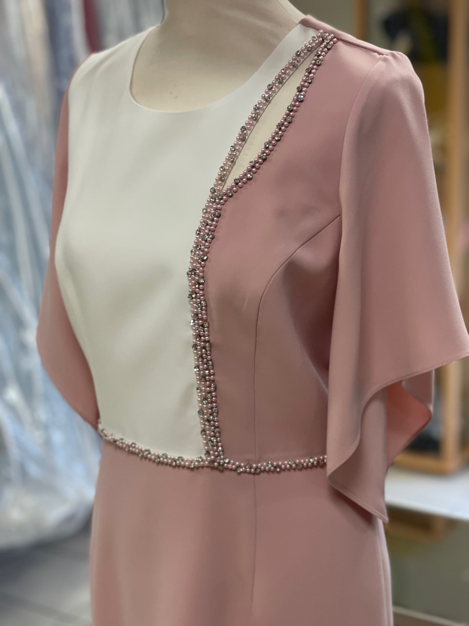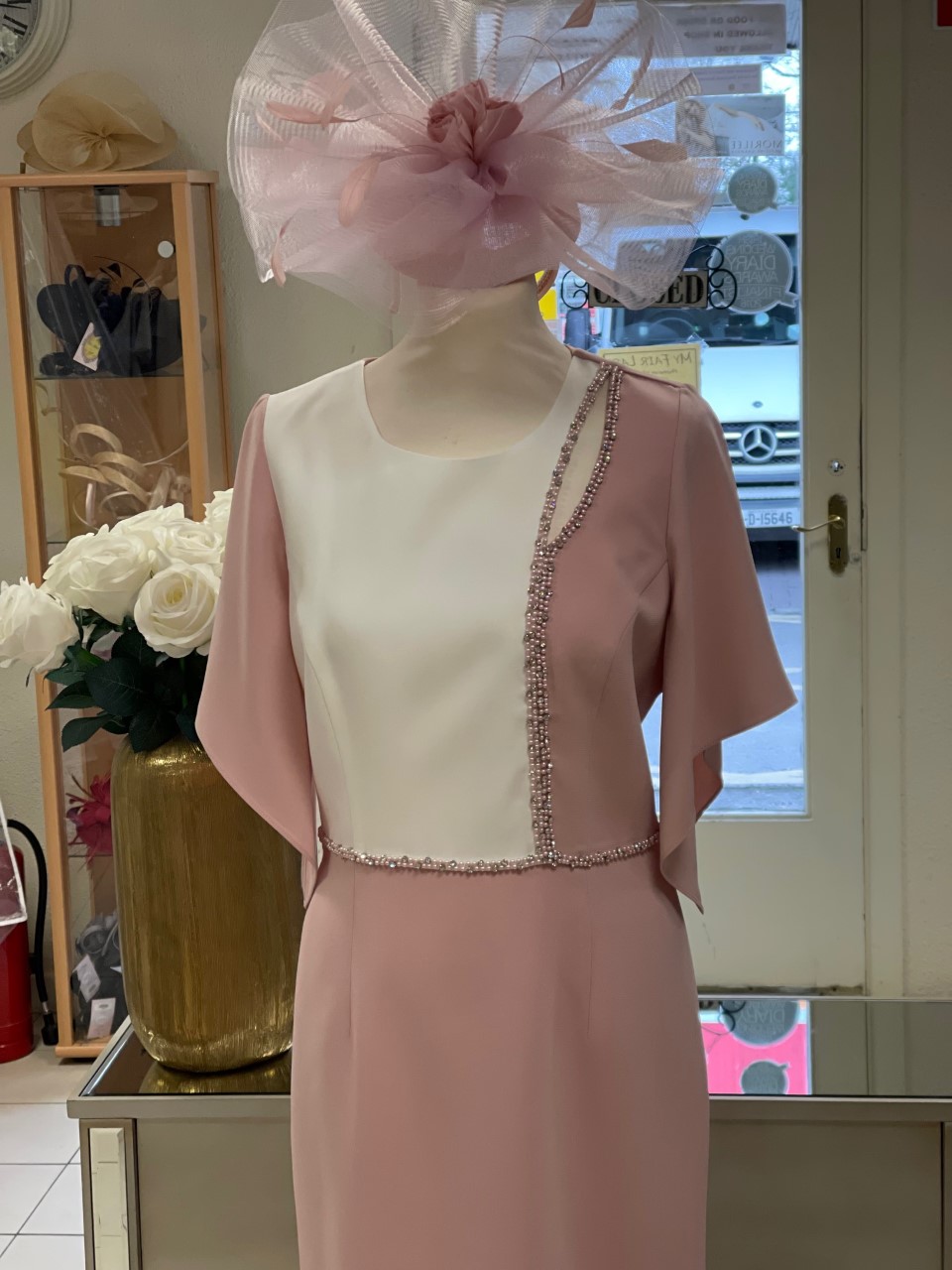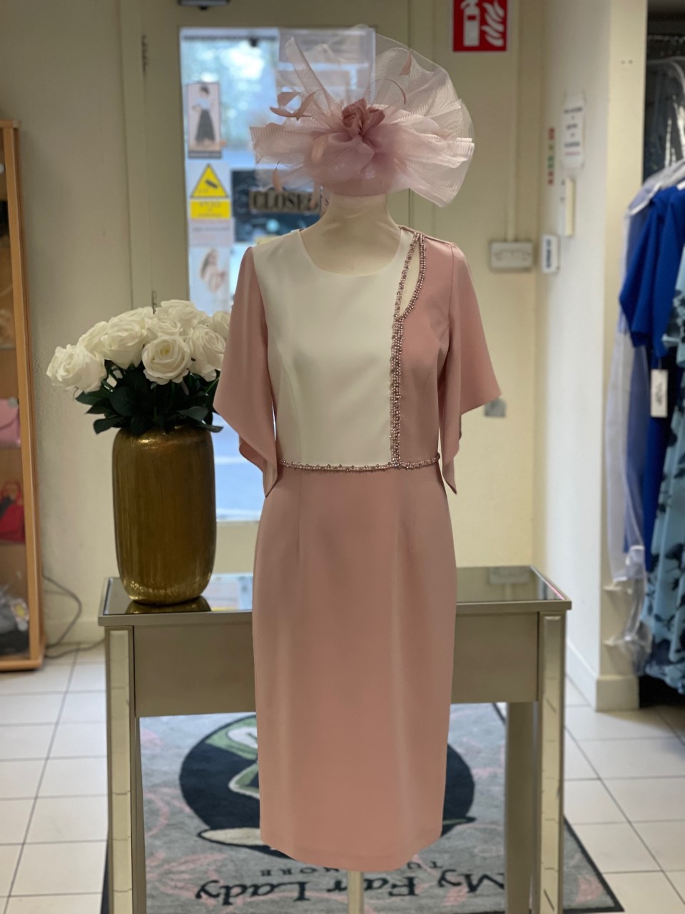 A straight skirt with a diamonte embellished cutout in a fabulour ivory and blush mix