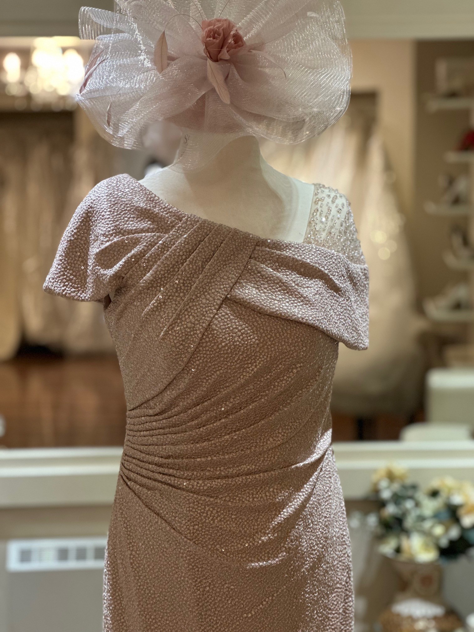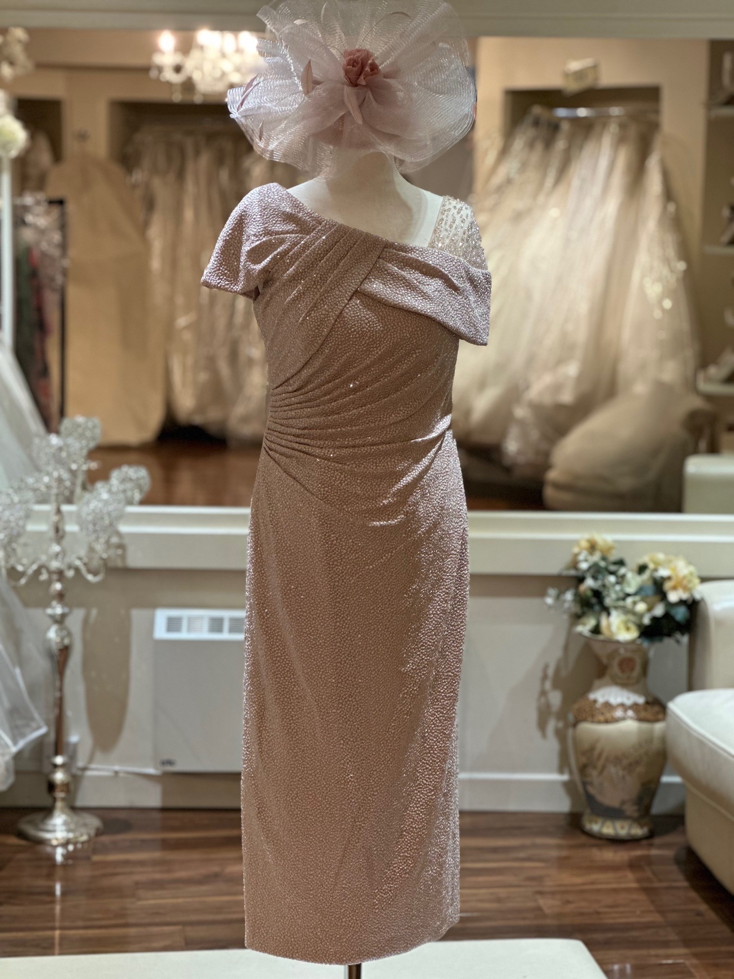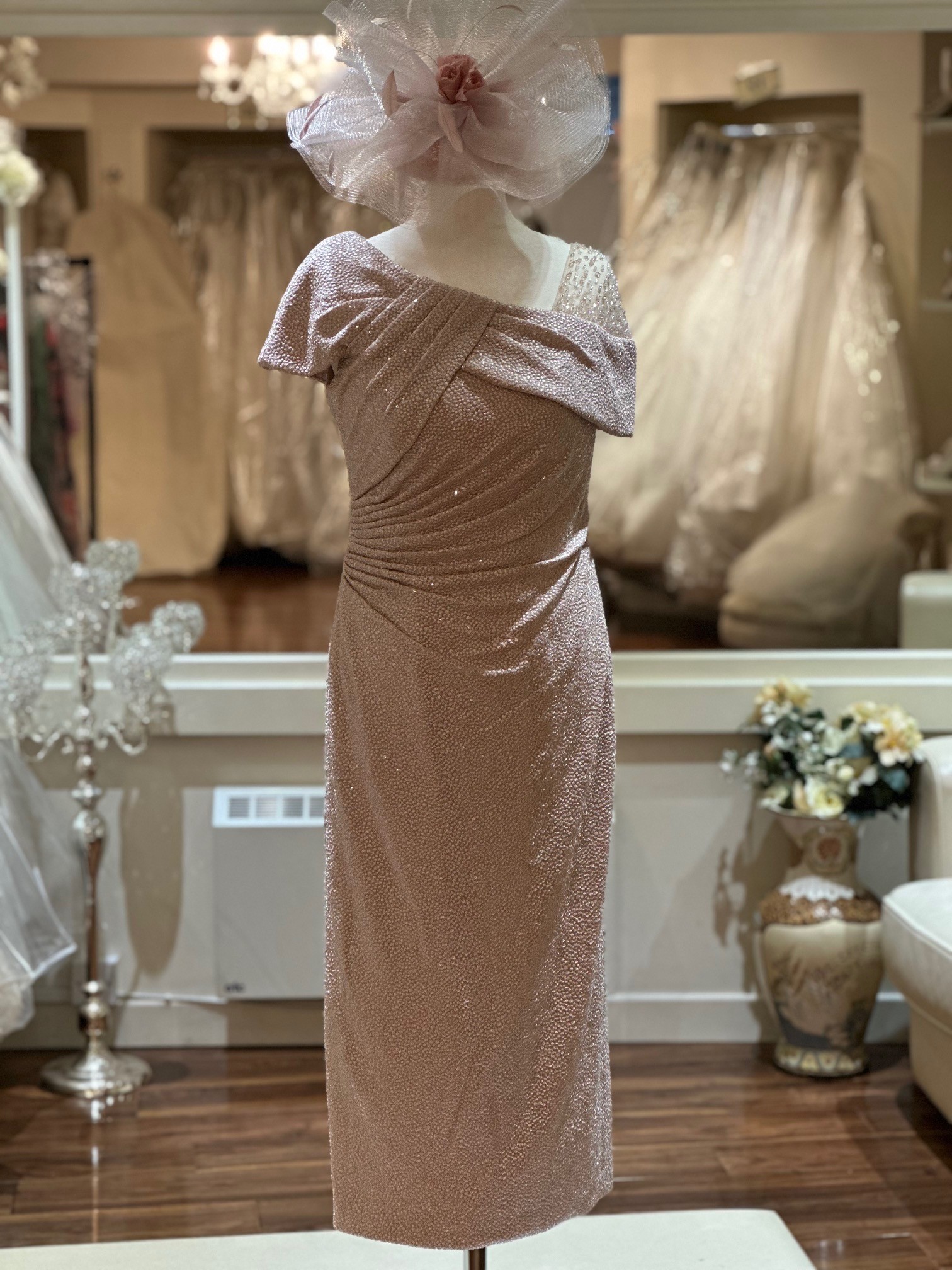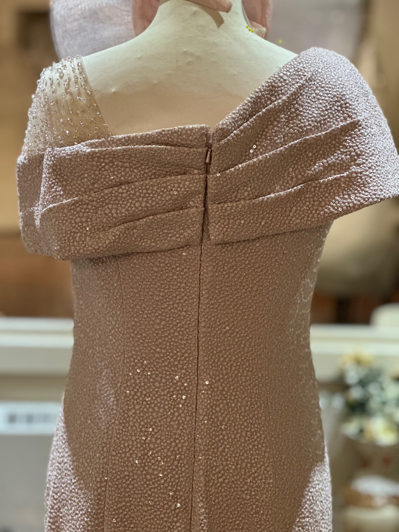 This exquisite one-shoulder sparkle stretch bardot dress features elegant gathering at the waist to beautifully accentuate your figure. The stunning illusion beading on the shoulder adds a touch of glamour, making this dress perfect for special occasions. With its modern silhouette and refined details, this dress effortlessly combines sophistication with a captivating flair, ensuring you shine with confidence at every event.