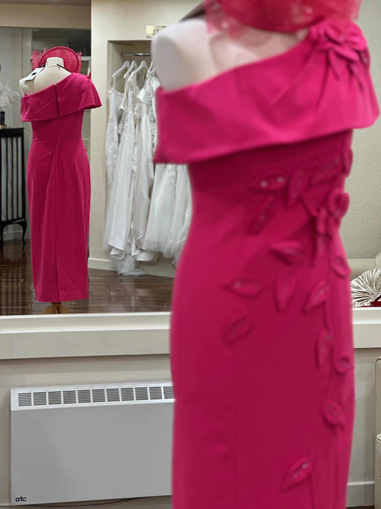 Crafted in a beautifully structured fabric, this figure-flattering midi dress features a dramatic one-shoulder neckline with a soft folded collar detail that frames the shoulders beautifully. The silhouette is sleek and tailored, skimming the body to create a refined and feminine shape.