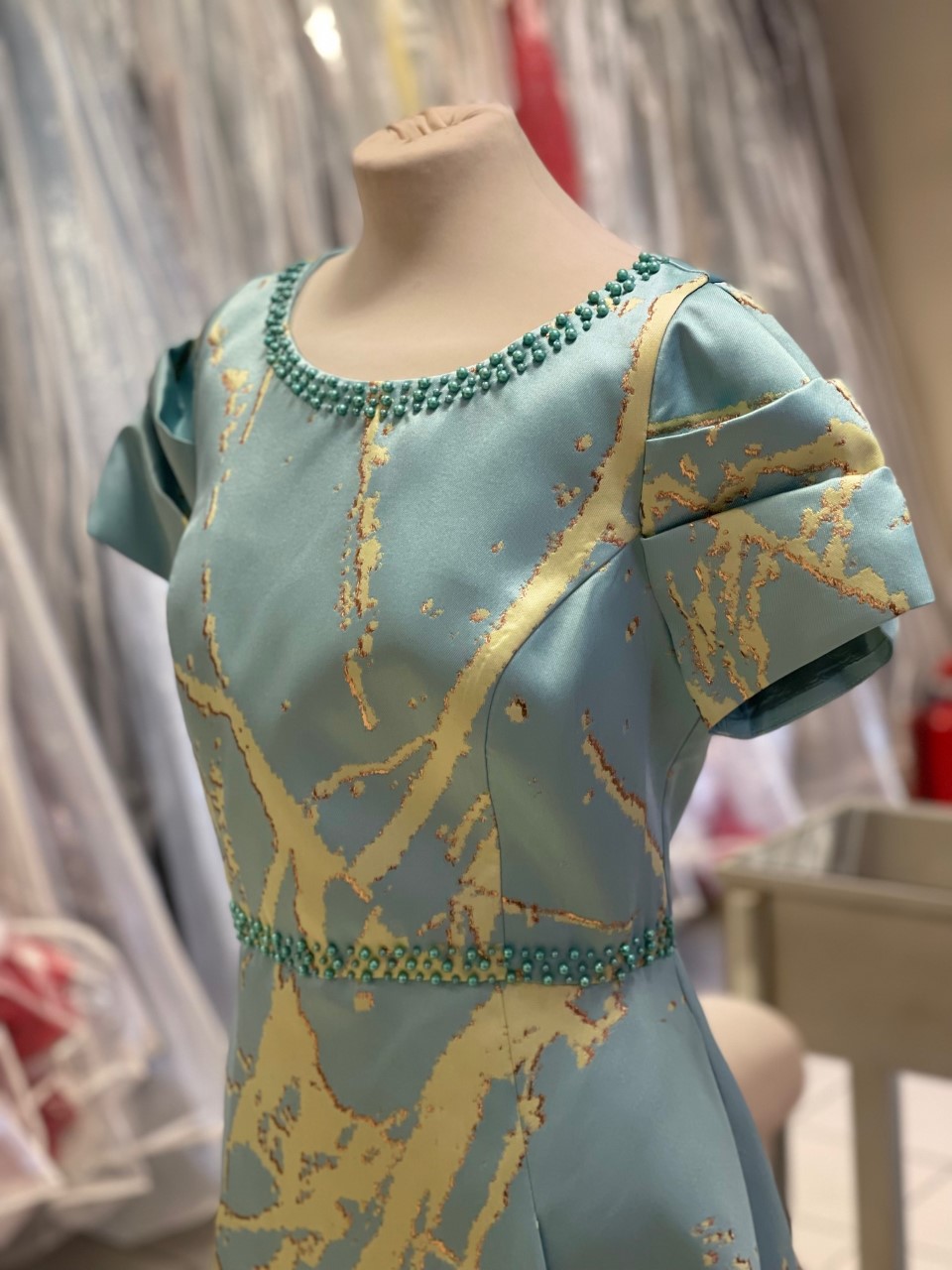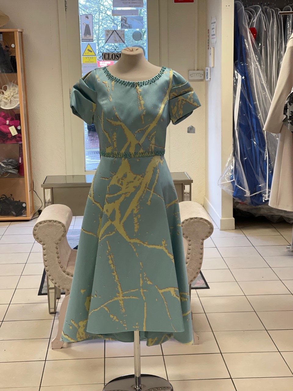 One of our premium Irish Designers has made this dress in the most fabulous fabric for a mother of the Bride or Groom that wants something a little bit different. The colours are so subtle and the pearl beading around the neckline and the waist finish the details perfectly