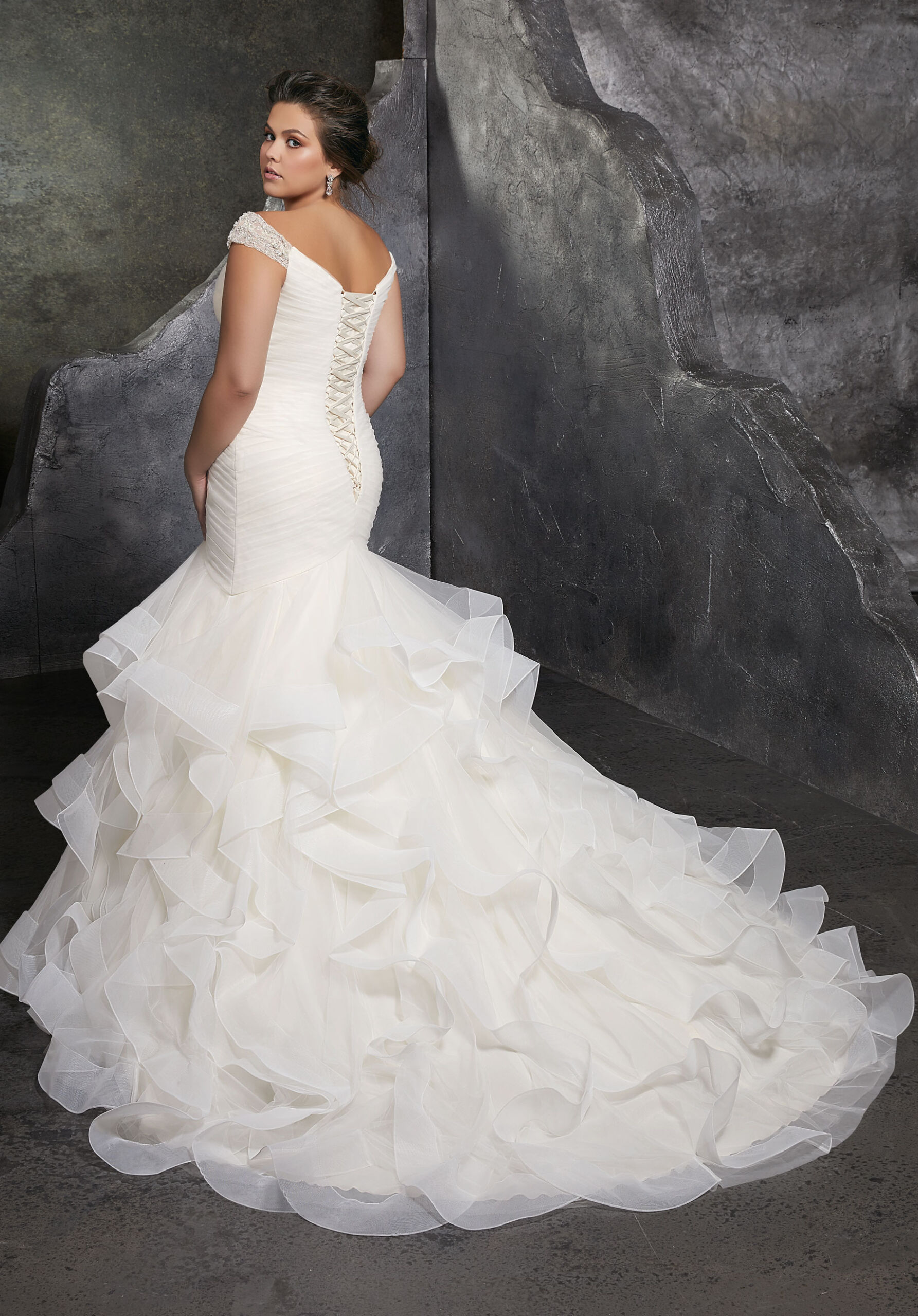 Home / Wedding Dresses / Morilee Wedding Dresses / Julietta Collection Wedding Dresses / 3237 KORI Wedding DressThis gorgeous cap sleeve Kori designer wedding dress features beautiful appliquès, crystals, and ruffles on an intricately designed tulle bridal gown. Available in white, ivory, and ivory/champagne, the sweetheart neckline complements the figure flattering mermaid silhouette of this designer wedding dress. A flounced full skirt and corset style back complete this stunning look