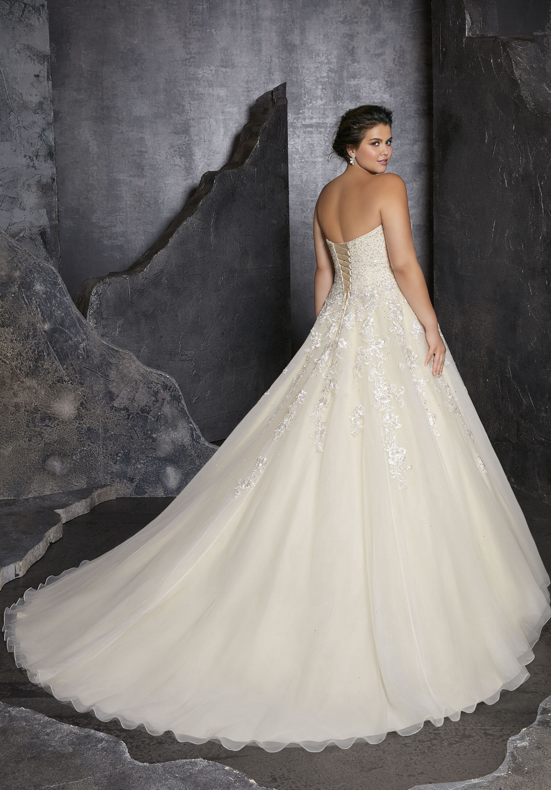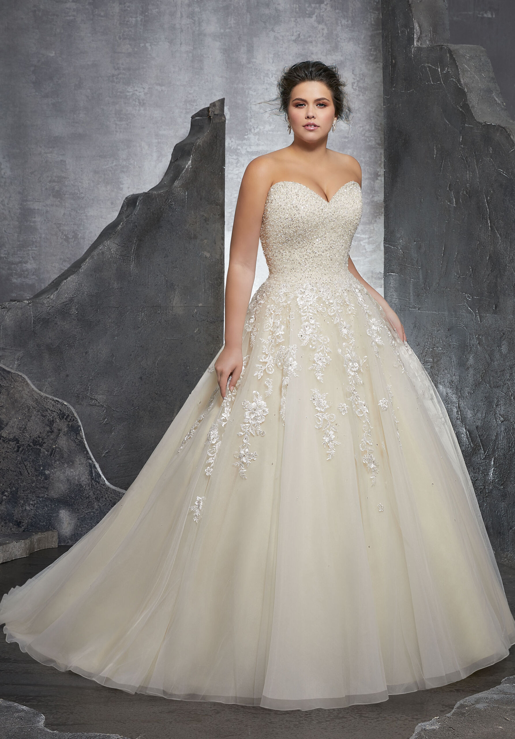 Home / Wedding Dresses / Morilee Wedding Dresses / Julietta Collection Wedding Dresses / 3238 KASMIRA Wedding DressThis beautiful strapless Kasmira designer bridal gown features a crystallized beaded sweetheart bodice with embroidered appliqués on tulle. Available in white, ivory, and ivory/champagne, the sweetheart neckline complements the ball gown silhouette of this designer bridal gown and the corset style back completes this beautiful bridal look.