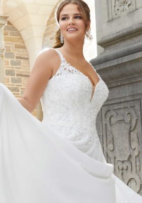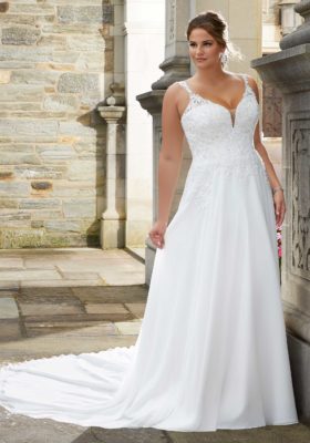 Home / Wedding Dresses / Morilee Wedding Dresses / Julietta Collection Wedding Dresses / 3282 Sylvia - Morilee Wedding DressThe Sylvia bridal gown features crystal and pearl beaded embroidery on a sculptured, strappy bodice with flowing A-line chiffon skirt