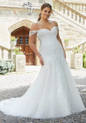 Home / Wedding Dresses / Morilee Wedding Dresses / Julietta Collection Wedding Dresses / 3289 SOPHIE Wedding DressesThe Sophie wedding gown features crystal and diamanté beading on embroidered appliqués over a tulle mermaid silhouette. Details include sheer, sculptured sides and back with detachable sleeves and scalloped, lace trimmed train. Detachable lace on net sleeves..