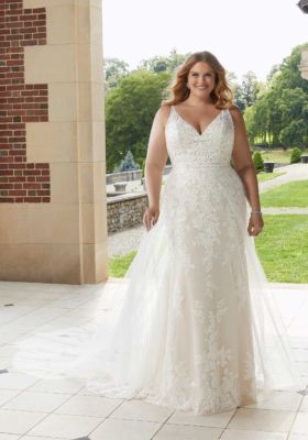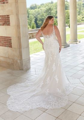 Home / Wedding Dresses / Morilee Wedding Dresses / Julietta Collection Wedding Dresses / 3347 Esme - Morilee Wedding DressEsme is a stunning sheath wedding dress with a blingy crystal beaded v-neckline and scoop back on a relaxed sheath silhouette. The sparkle net fabric shimmers from all angles, while the frosted, floral embroidered lace and sheer petal train keep the look soft and romantic. Add on the airy, detachable tulle overskirt for extra dama as you walk down the aisle.