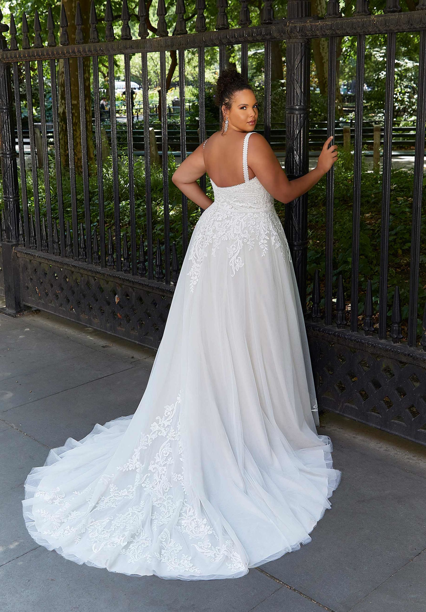 Home / Wedding Dresses / Morilee Wedding Dresses / Julietta Collection Wedding Dresses / 3373 Hannah - Morilee Wedding DressDelicate and feminine with a boho touch, our Hannah designer wedding dress features a soft scoop neckline with a subtle plunge accented by unique crystal beaded lace trim. Gorgeous frosted, embroidered lace appliqués decorate the gown, while a banded waist detail, in matching lace trim, cinches in your figure. The effortless tulle A-line has a cloud-like effect as it floats off the body making this a truly dreamy wedding dress.
