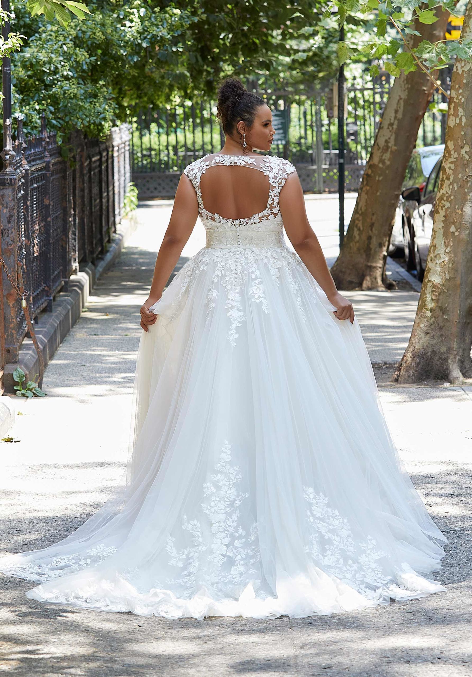 Home / Wedding Dresses / Morilee Wedding Dresses / Julietta Collection Wedding Dresses / 3375 Hadley - Morilee Wedding DressEffortlessly elegant, our Hadley designer wedding dress is a boho dream with botanical-inspired crystal beaded embroidered lace appliqués cascading down from the sheer v-neck bodice. The double waistband detail cinches in your figure on the soft tulle A-line that has an ethereal effect with peek-a-boo appliqués. The best part is the open keyhole back that will wow your guests as you walk down the aisle.