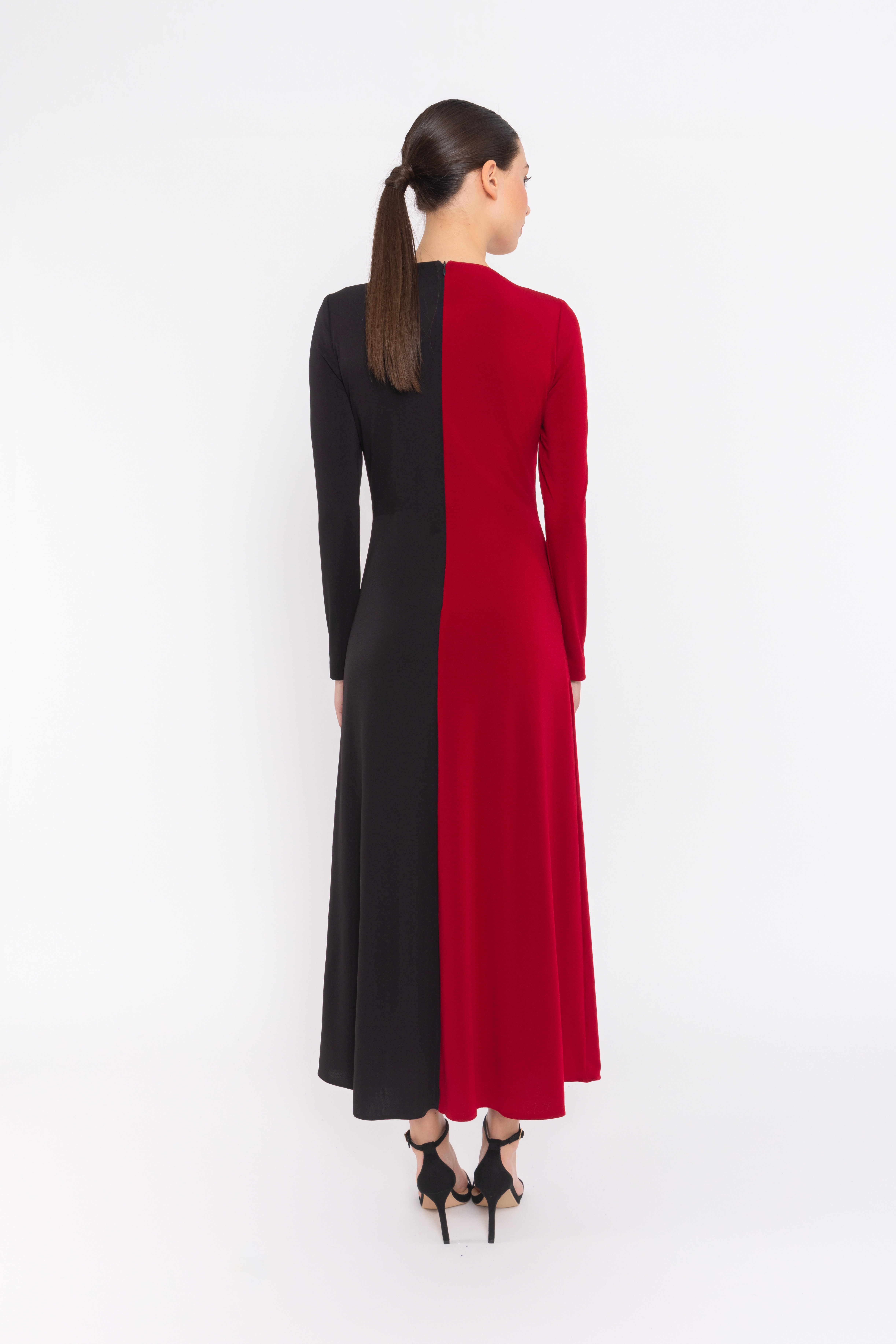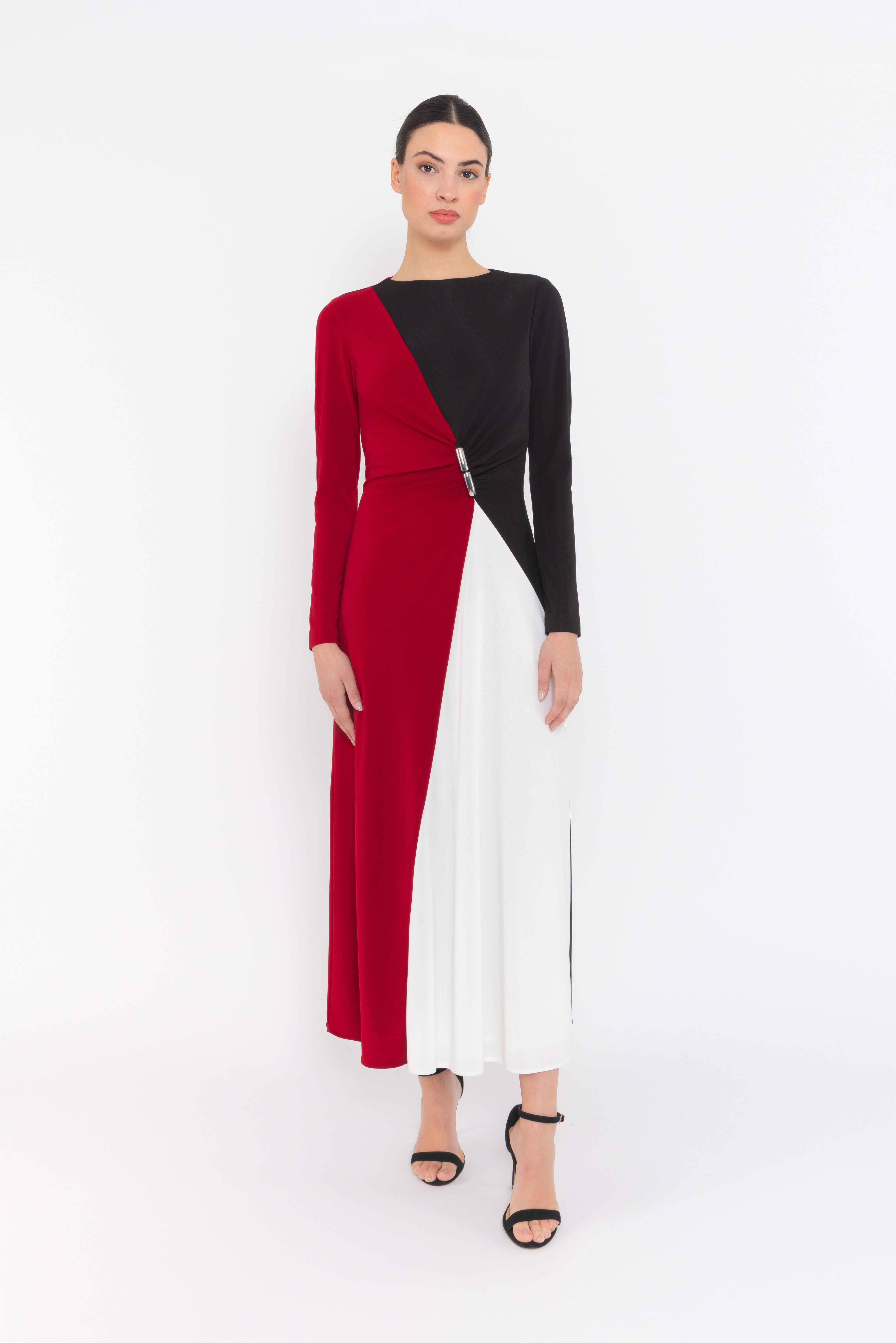 Home / Occasion Wear / Guest Wear for weddings or special occasions / 52029 Black/Wine DressFeaturing a bold colour-block design in rich wine, classic black, and soft ivory, this dress creates a flattering, elongating silhouette with a refined edge.
