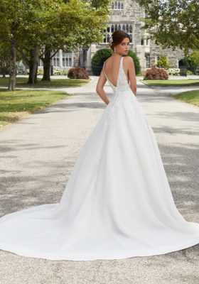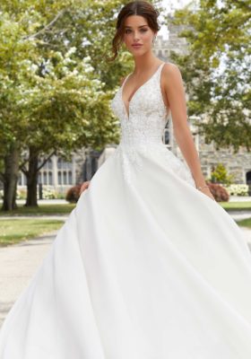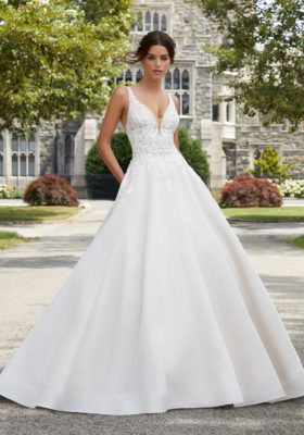 Home / Wedding Dresses / Morilee Wedding Dresses / Blu Collection Wedding Dresses / 5809 SABRINA Wedding DressesThe Sabrina wedding gown features crystal beaded, frosted embroidered appliqués on net on an organdy ball gown with horsehair hemline.