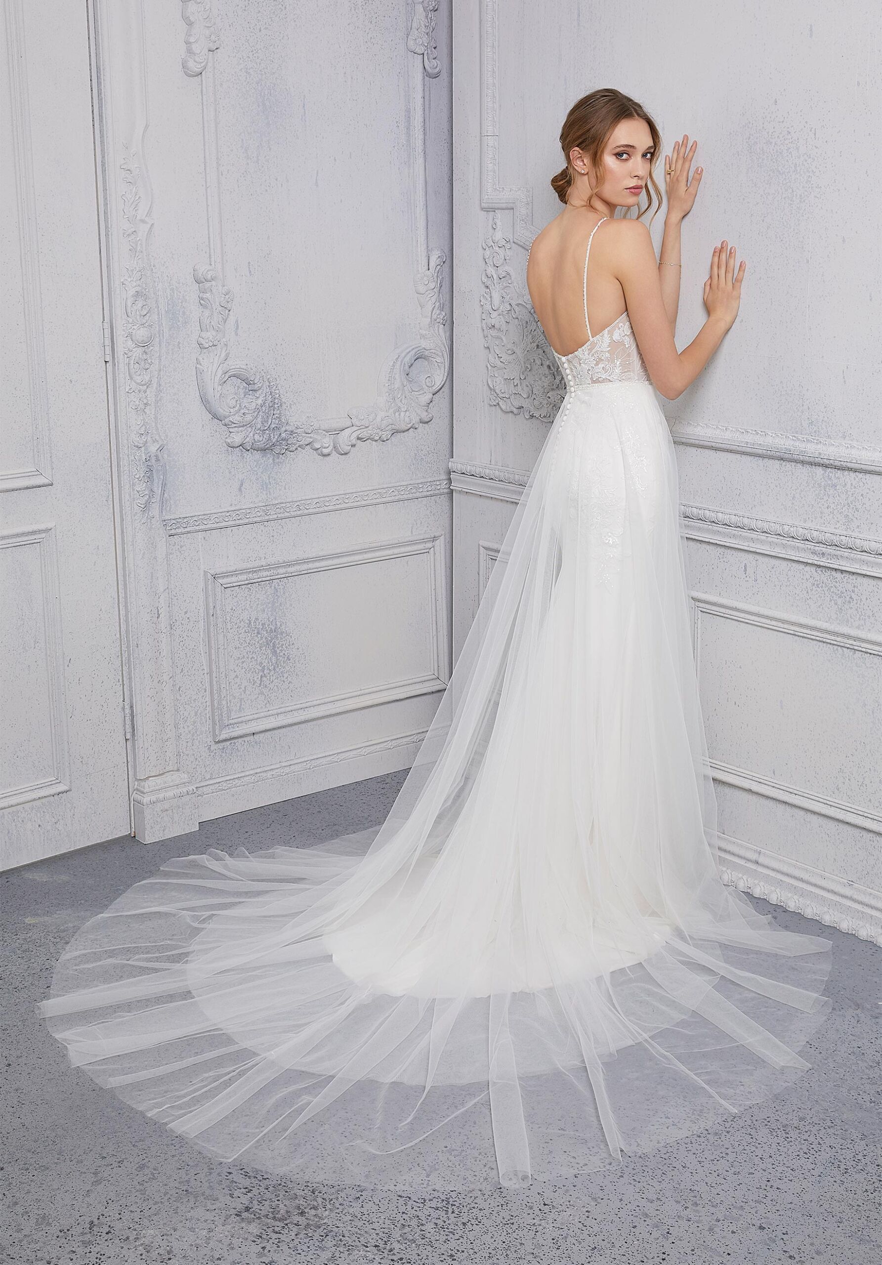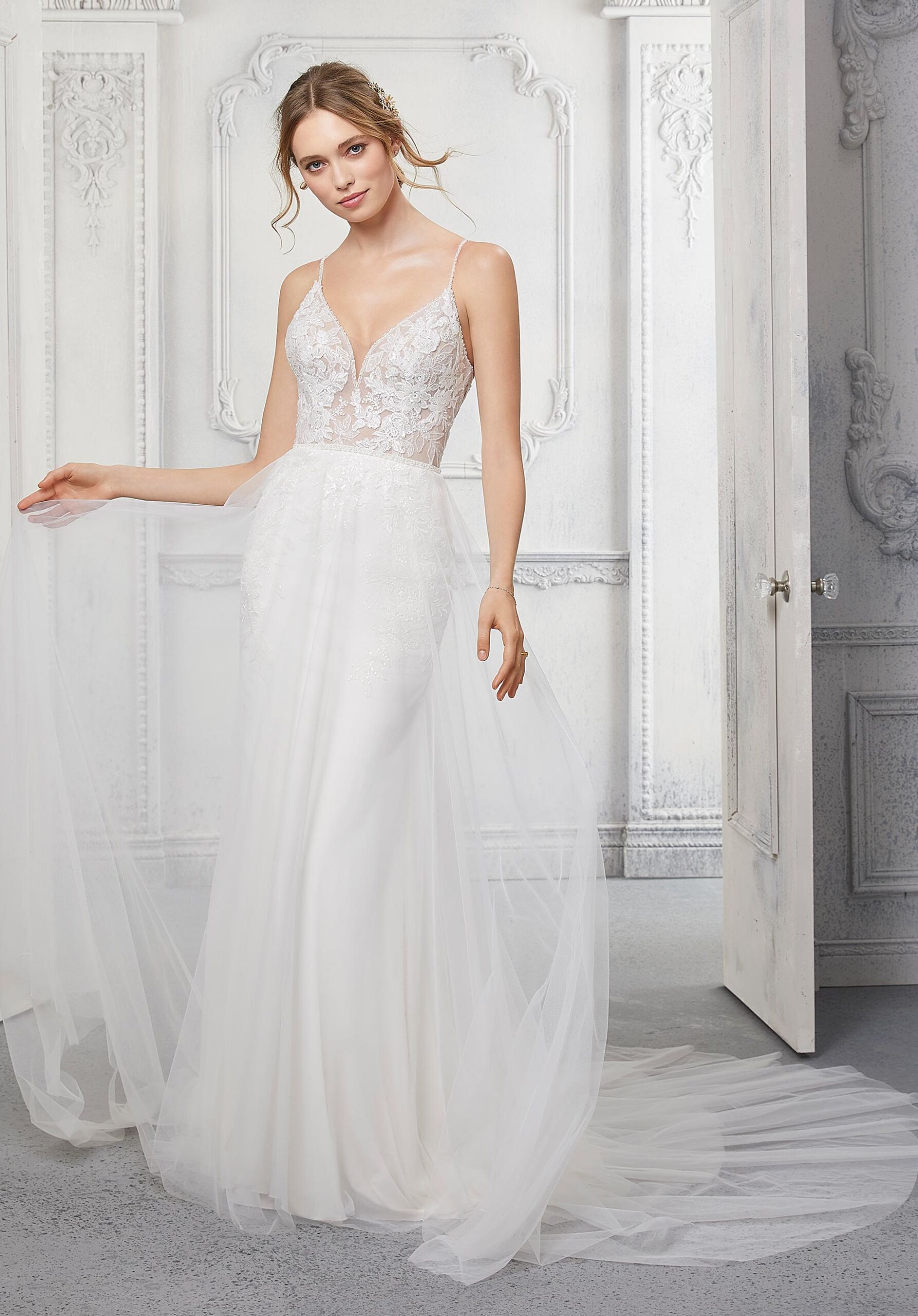 Home / Wedding Dresses / Morilee Wedding Dresses / Blu Collection Wedding Dresses / 5920 CorinneOur Corinne wedding dress has heavenly details, from her frosted, embroidered bodice to the absolutely airy soft tulle overlay. Decadent crystal beading on the waistline and neckline help you shine bright and the net fit and flare skirt beautifully compliments your figure.