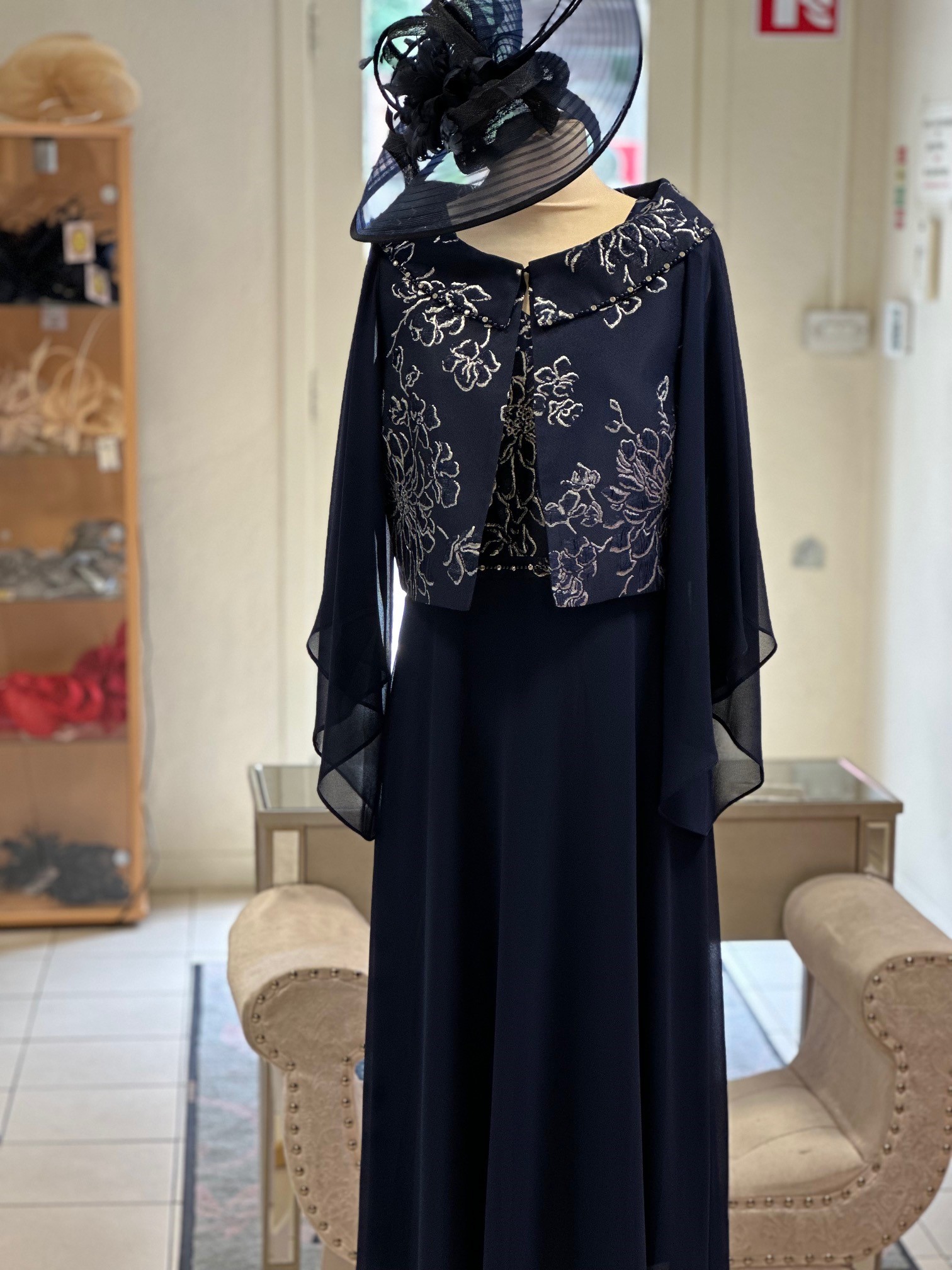 A chiffon A line skirt and a brocade bodice with a matching jacket.