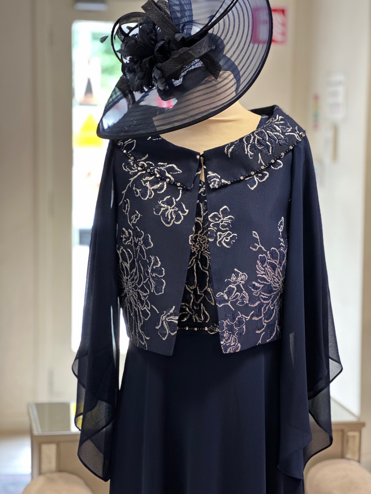 Pearl and diamonte detailing on the waist and along the collar of the jacket. Perfect for Mother of the Bride or Groom for a autumn/winter wedding