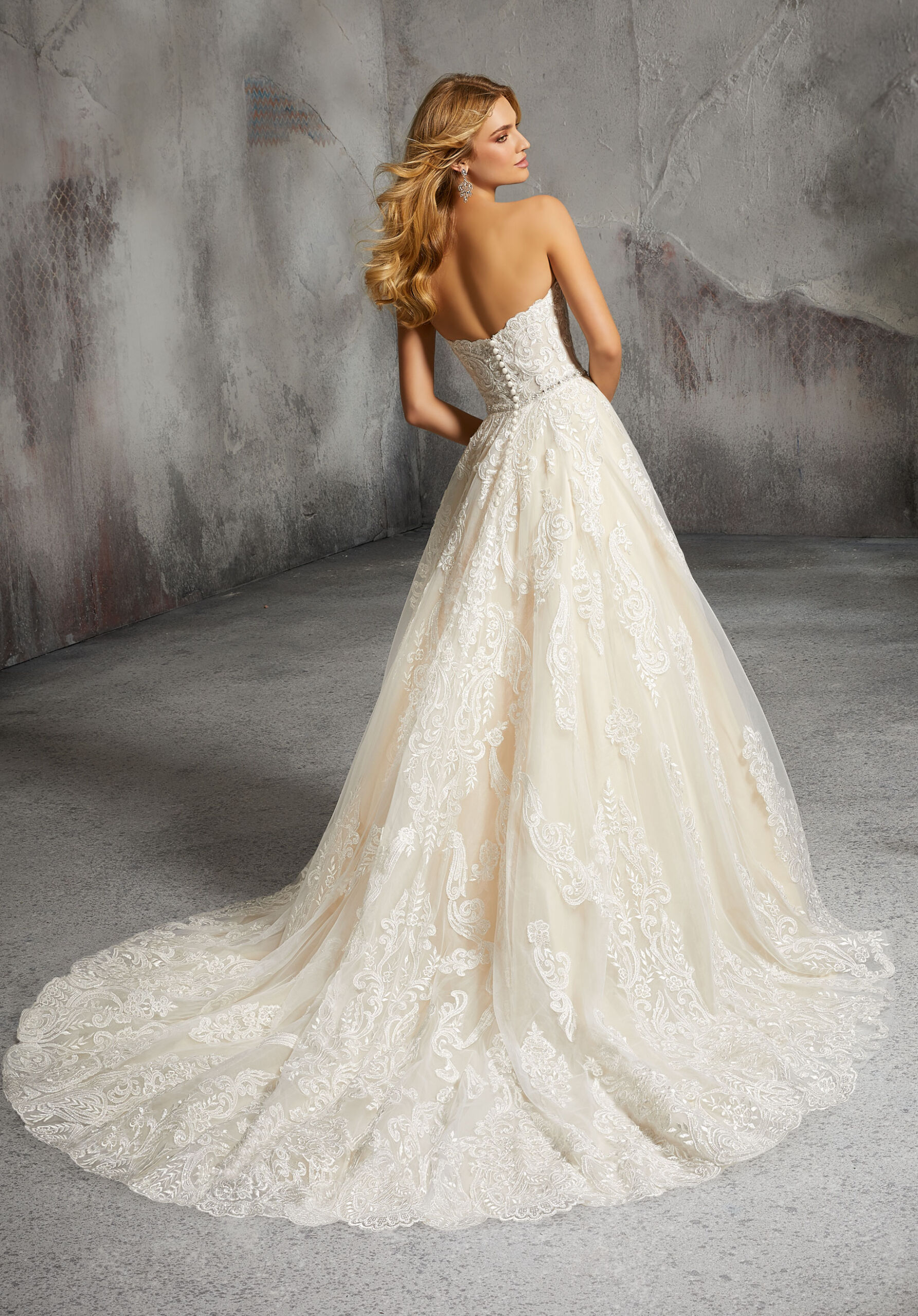 Home / Wedding Dresses / Morilee Wedding Dresses / Main Collection Wedding Dresses / 8273 LisaElegant Tulle Gown With Full A-Line Skirt. Frosted, Medallion Style Embroidery and Covered Button Details Complete the Look. Matching Satin Bodice Lining Included. Removable Beaded Net Belt Included.