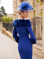 This fitted dress features a luxurious fur collar that is removable, adding a touch of elegance to your look.