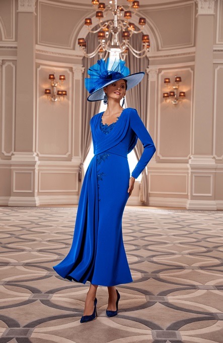 A gorgeous, fitted lace full length dress with complementing lace sleeves. The stunning dress features lace appliques and a ruched waist detail which creates a flattering hourglass silhouette. Perfect or a Spring and Summer wedding.