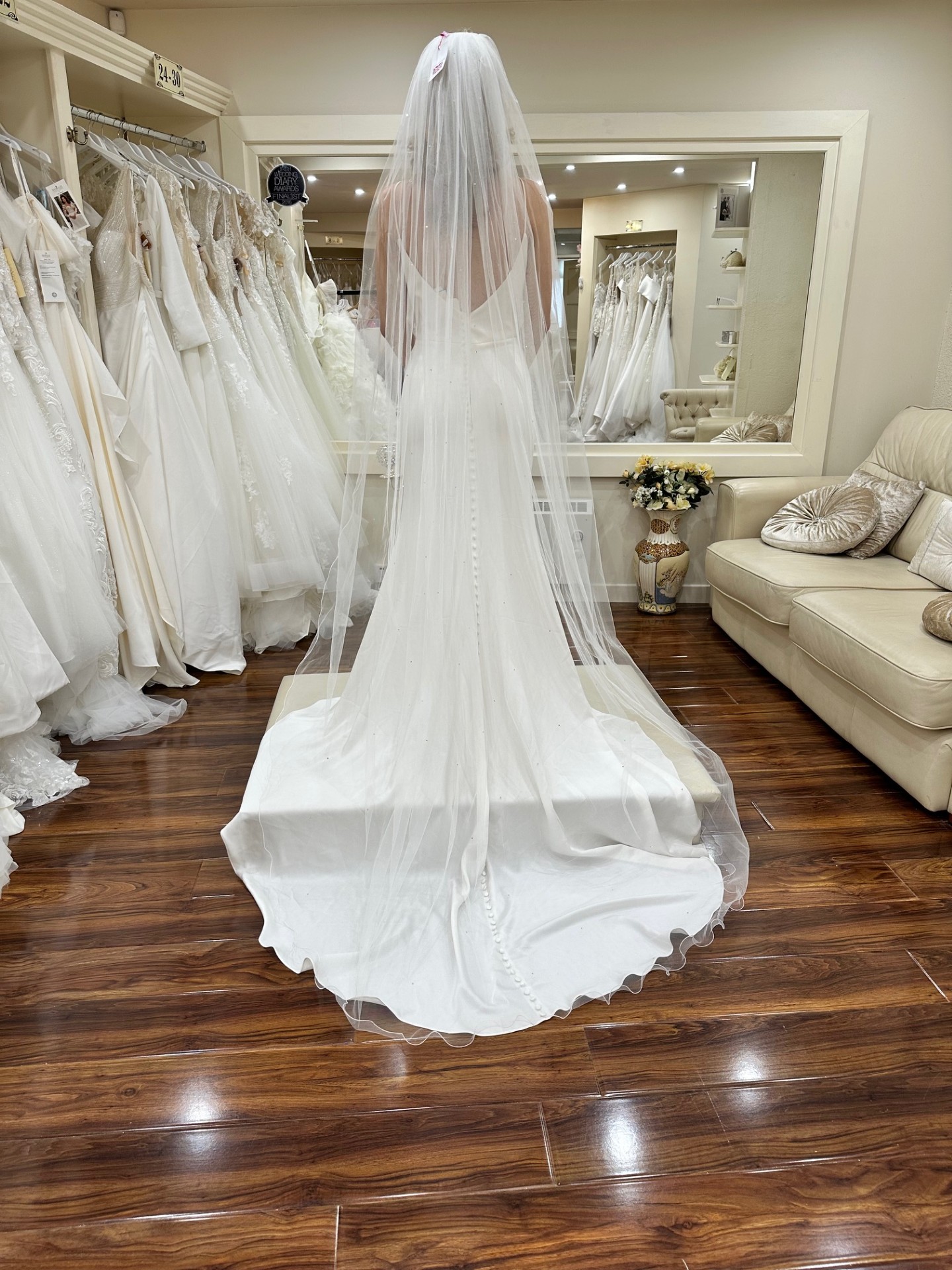 Plain veil 250cm in length. Single tier Curly edge