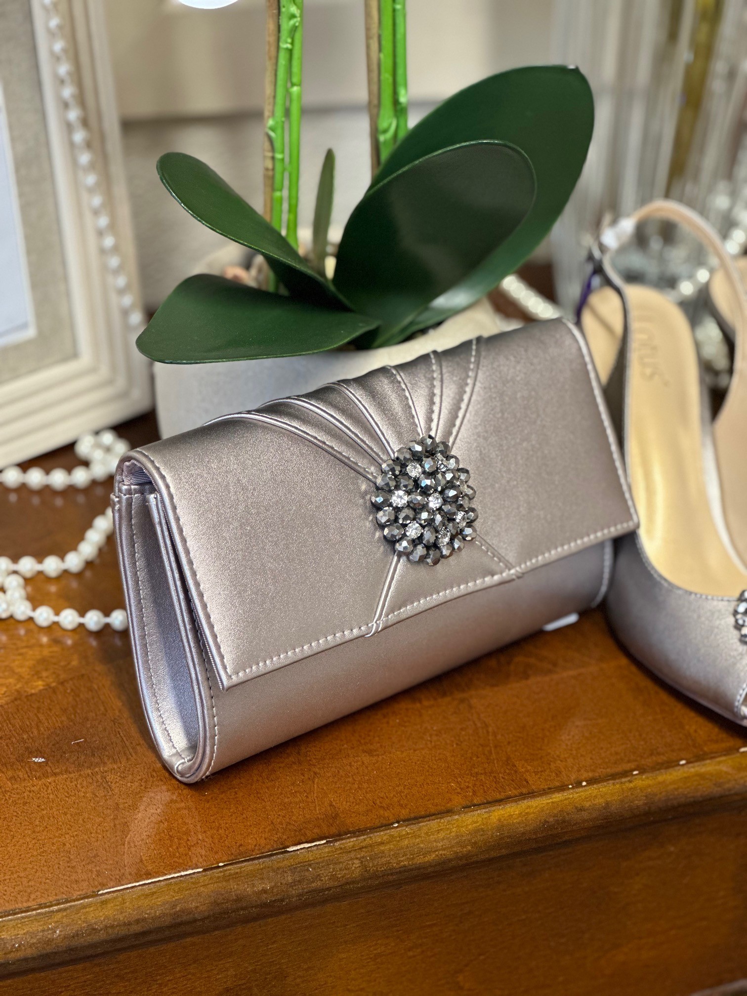 Home / Shoes & Bags / Shoes & Bags - Occasion Wear / Aria Clutch Bag - PewterChannel the latest metallic trend with the exuberant Lotus Aria clutch bag! Crafted from quality metallic material and showcasing feminine beaded adornment and pleats, this style will enhance all of your occasion wear outfits alongside the Lotus Elodie slingback Shoes! The Lotus Aria also features a textile lining and internal pocket for your essentials, truly a covetable style which is bound to impress!