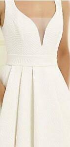 Dress has an embossed fabric .