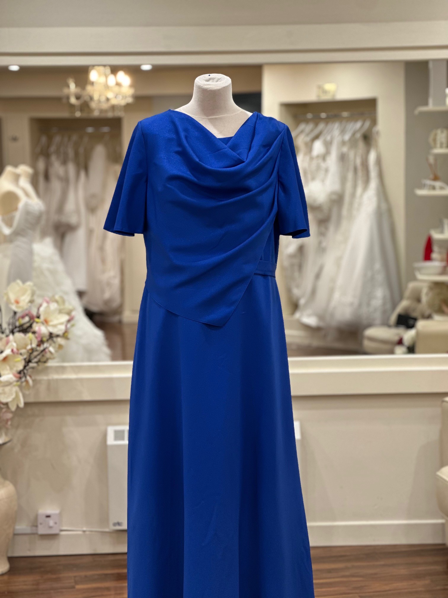 Sophisticated, flattering and effortlessly graceful, this royal blue gown is designed to make you feel confident and elegant at any special event. The softly draped cowl neckline creates a beautiful, fluid shape across the bodice, adding movement and softness while remaining refined.