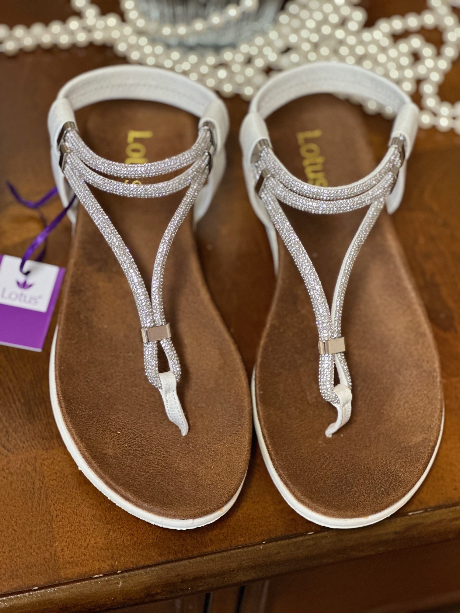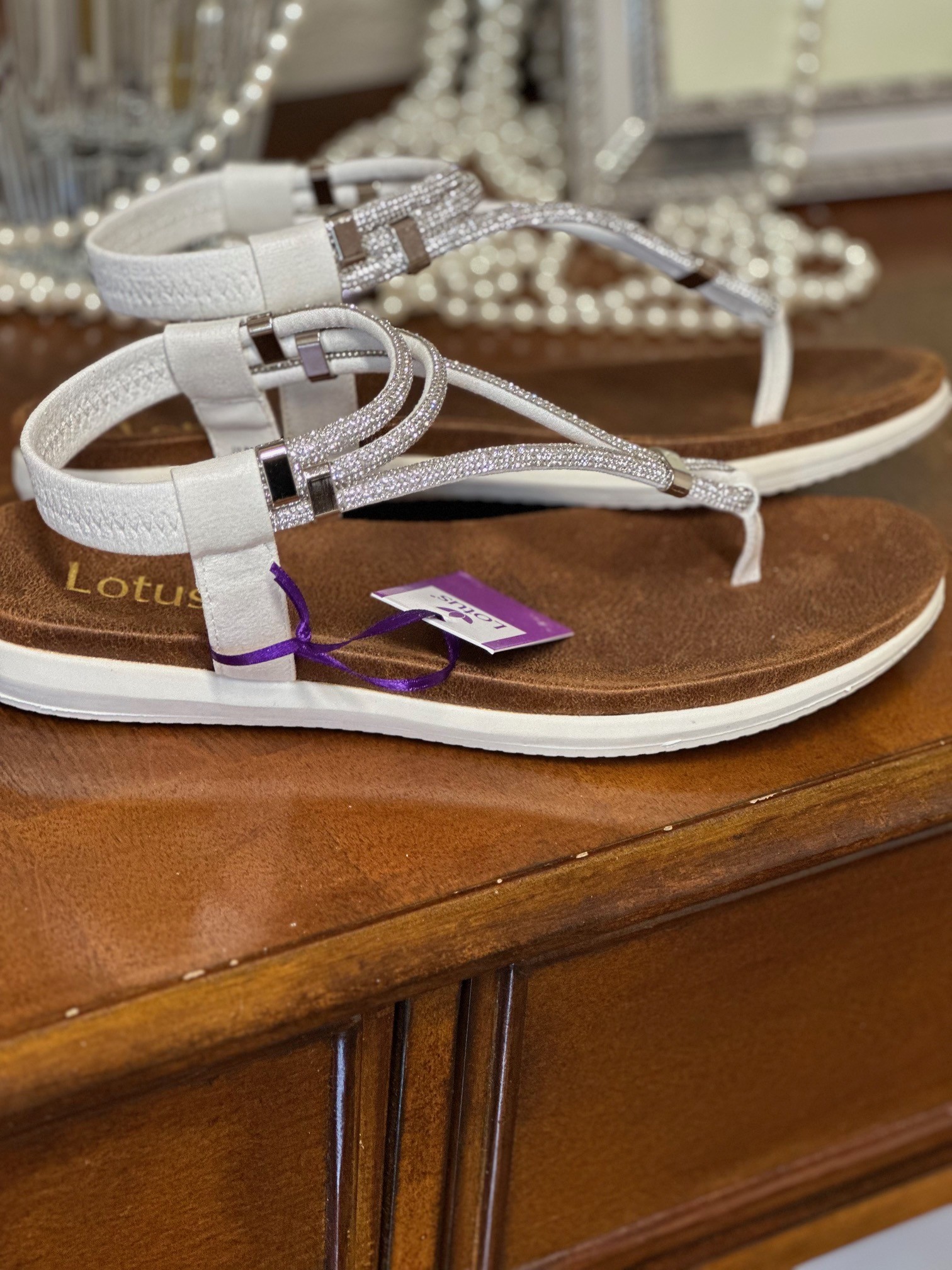 Home / Shoes & Bags / Shoes & Bags - Occasion Wear / Chica Silver/White SandalComplete your warm weather looks with the Lotus Chica toe-post sandal. Perfect for wearing 24/7 whilst on holiday, this women’s almost flat sandal is crafted with multiple soft tubular straps that are embellished with delicate diamantes that sparkle as they catch the light. Boasting an elasticated slingback this women’s white sandal not only exudes a premium finish, but it is also exceptionally comfortable.