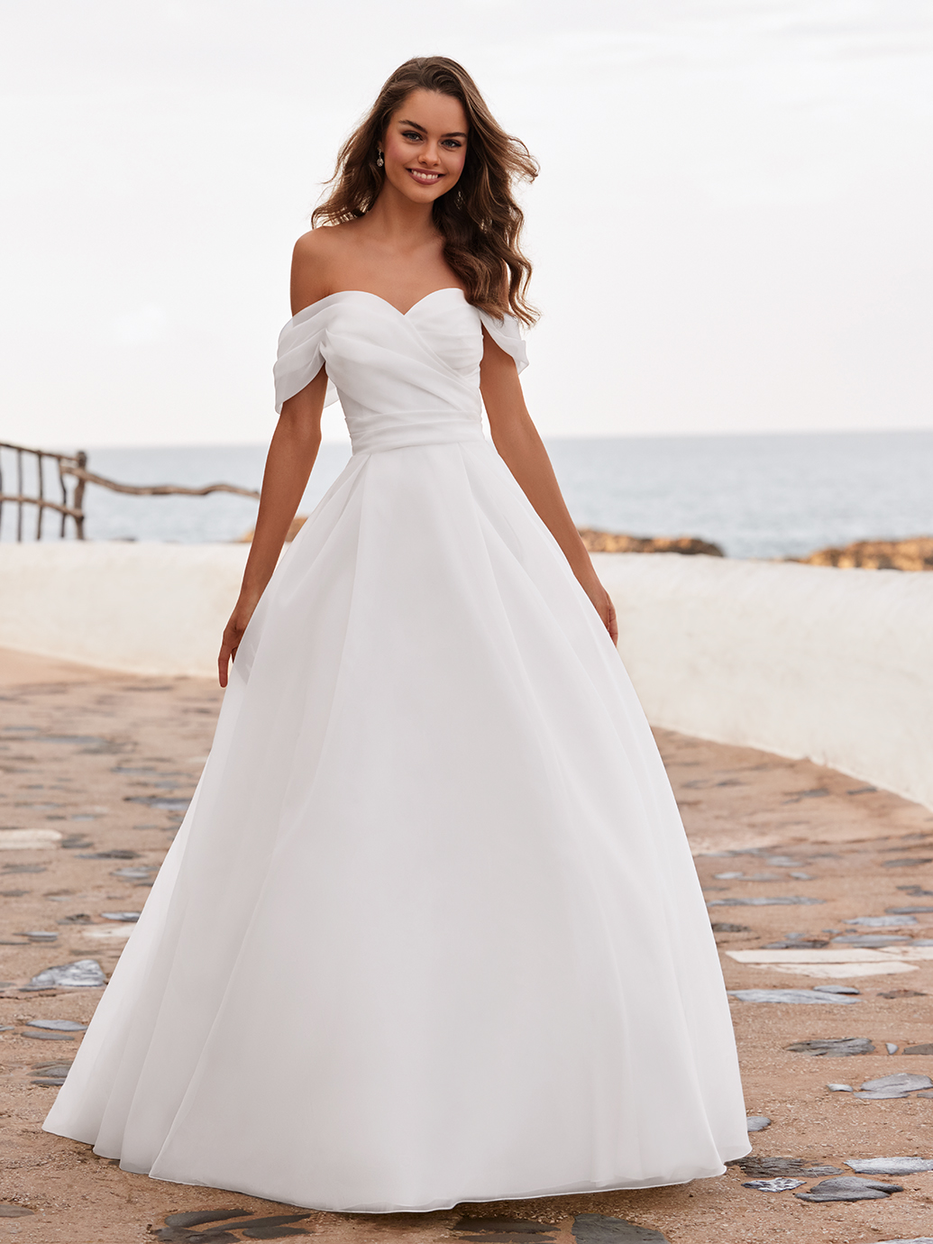 Introducing the DAISIE gown, crafted from delicate organza fabric with a draped bodice that accentuates your silhouette. Its off-the-shoulder straps exude timeless romance, framing your shoulders with elegance. The sweetheart neckline adds a touch of classic allure.