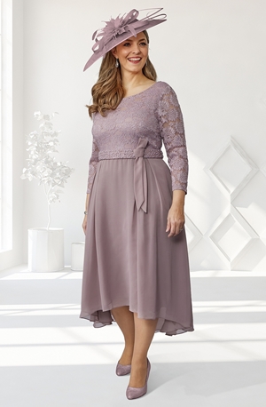 A beautiful lace top dress from Veromia, this dress has a swing chiffon skirt with a slightly dipped hem and comes in a gorgeous smokey grey colour