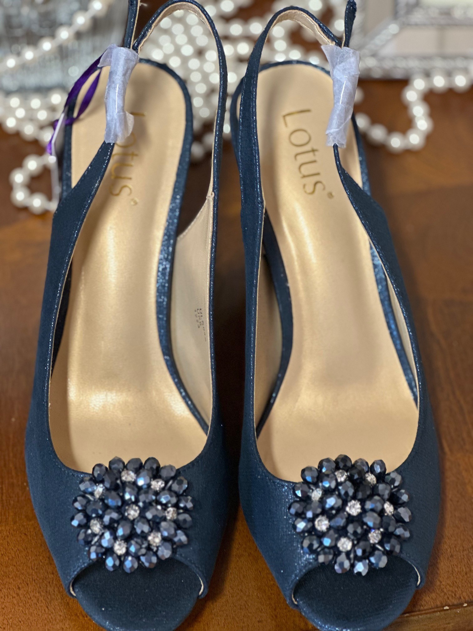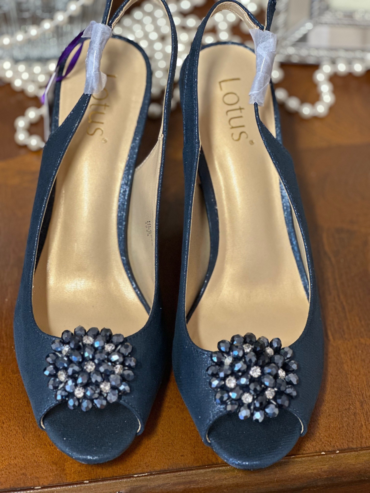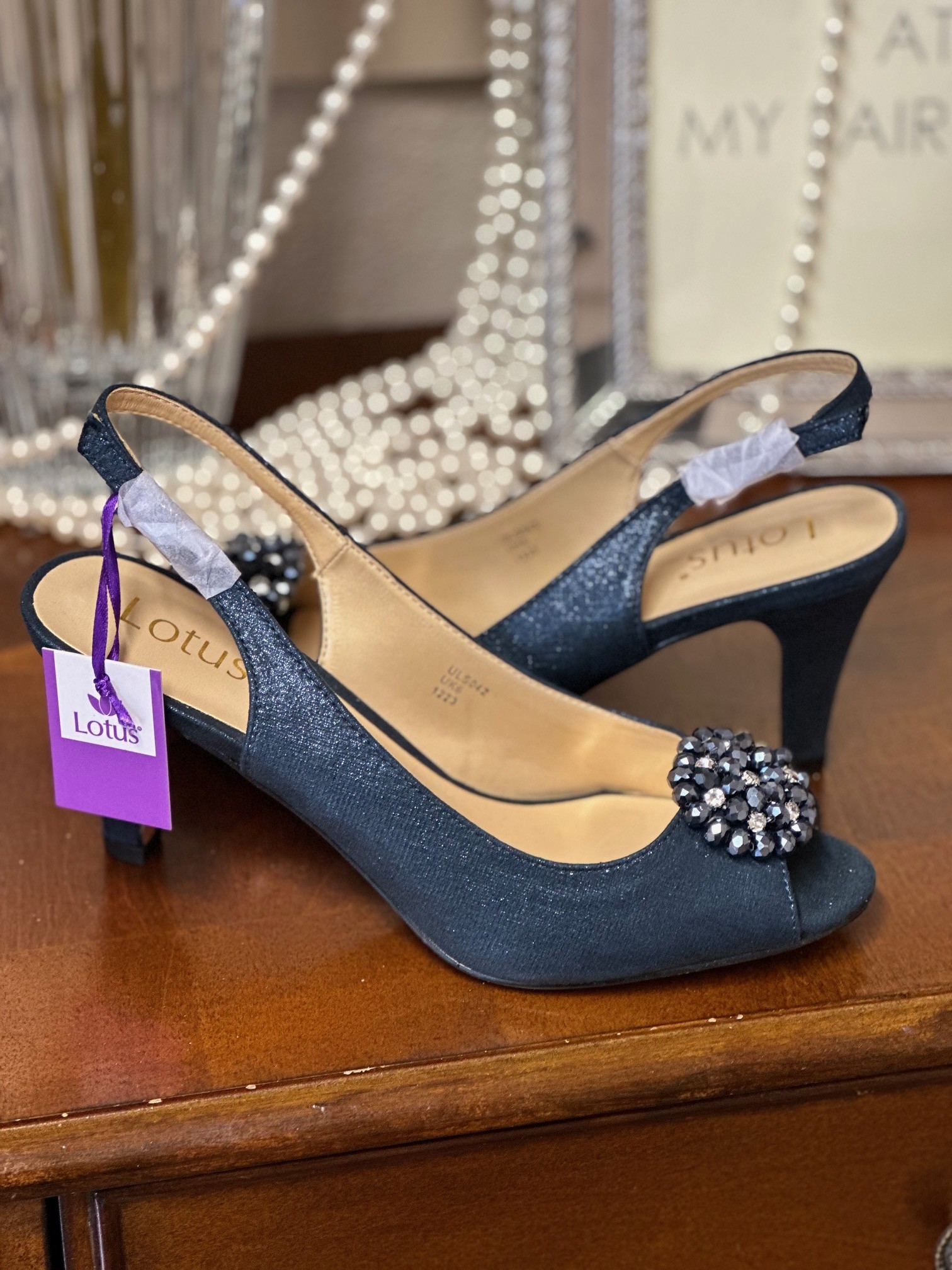 Home / Shoes & Bags / Shoes & Bags - Occasion Wear / Elodie Shoe Navy ShimmerComplete your story this season in the covetable Lotus Elodie shoes. This alluring ladies’ style boasts a multi-beaded adornment, peep toe and 8cm high heel to lengthen the wearer’s leg and create a flattering silhouette. The Lotus Elodie shoe is ideal alongside the Lotus Aria clutch bag for an unforgettable combination. Style with a flowing evening gown for a night to remember.