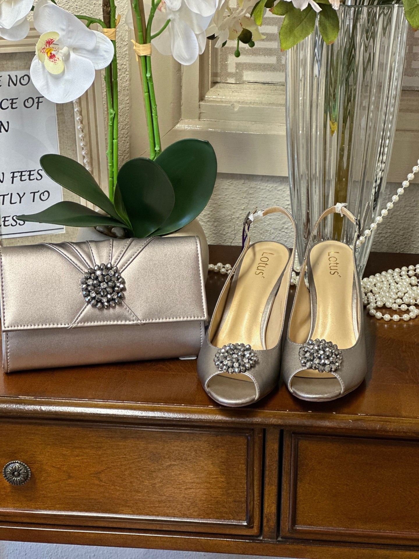 Home / Shoes & Bags / Shoes & Bags - Occasion Wear / Elodie Shoe - Pewter MetallicComplete your story this season in the covetable Lotus Elodie shoes. This alluring ladies’ style boasts a multi-beaded adornment, peep toe and 8cm high heel to lengthen the wearer’s leg and create a flattering silhouette. The metallic Lotus Elodie shoe is ideal alongside the Lotus Aria clutch bag for an unforgettable combination. Style with a flowing evening gown for a night to remember.