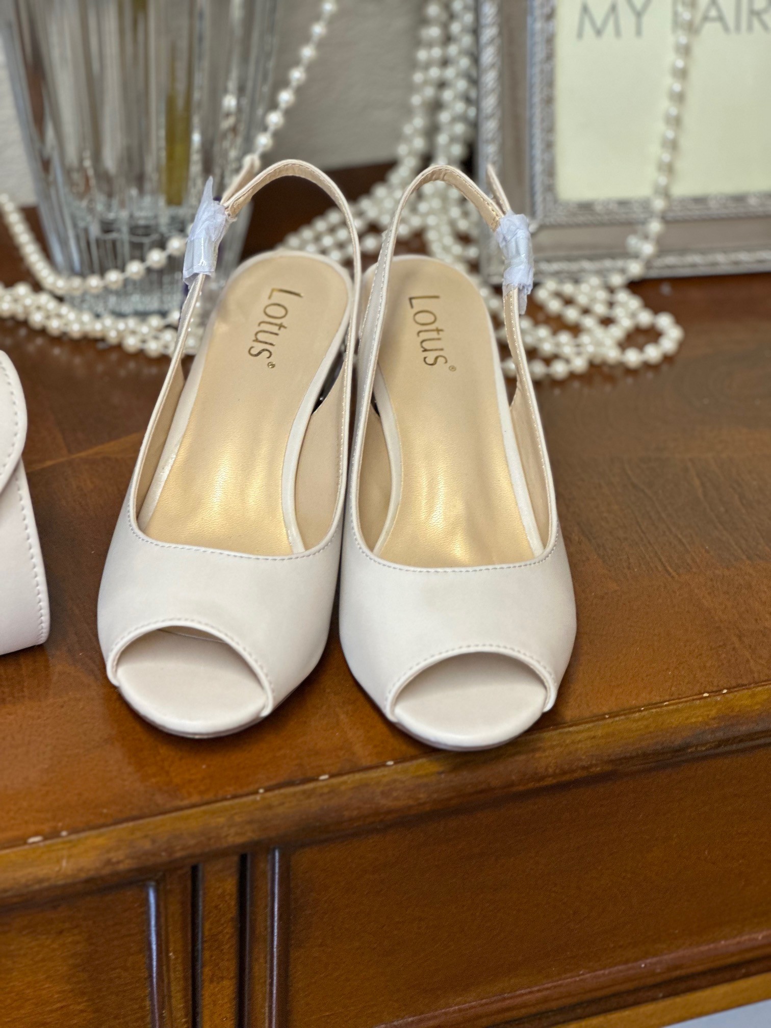 Set to slide seamlessly into your hard-working wardrobe is the Lotus Evelyn slingback shoe. This understated nude peep-toe shoe is crafted from faux leather, it encompasses an adjustable slingback and a contemporary 6.5cm block heel that is enhanced by a decorative metal plate and trim. This Lotus women’s nude shoe coordinates effortlessly with the Claire handbag.