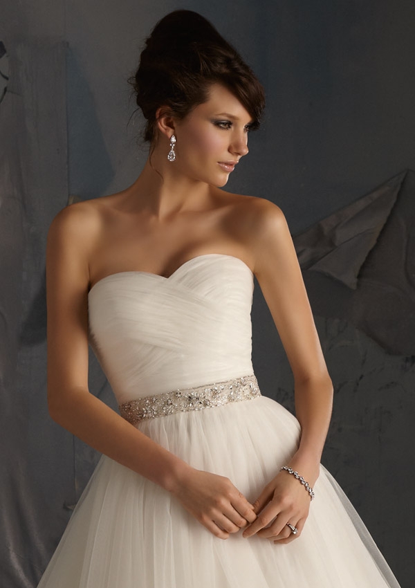 Heavily Beaded Organza Tie Sash with Multi Stone Details