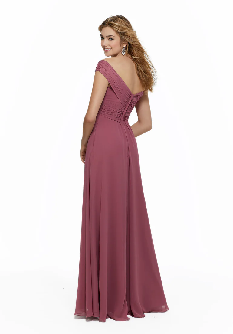 Home / Bridesmaids / Bridesmaids Dresses / 21646 Morilee Bridesmaids DressChiffon bridesmaid dress featuring a classic off the shoulder neckline with ruching on the sleeves. A-line skirt with empire waist.