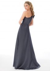A Satin a-line gown with a one shoulder neckline. From Morilee’s Bridesmaid Dresses collection.