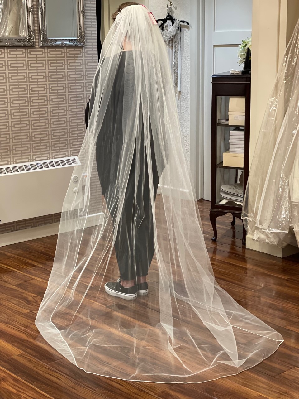 Ivory full length veil with satin trim