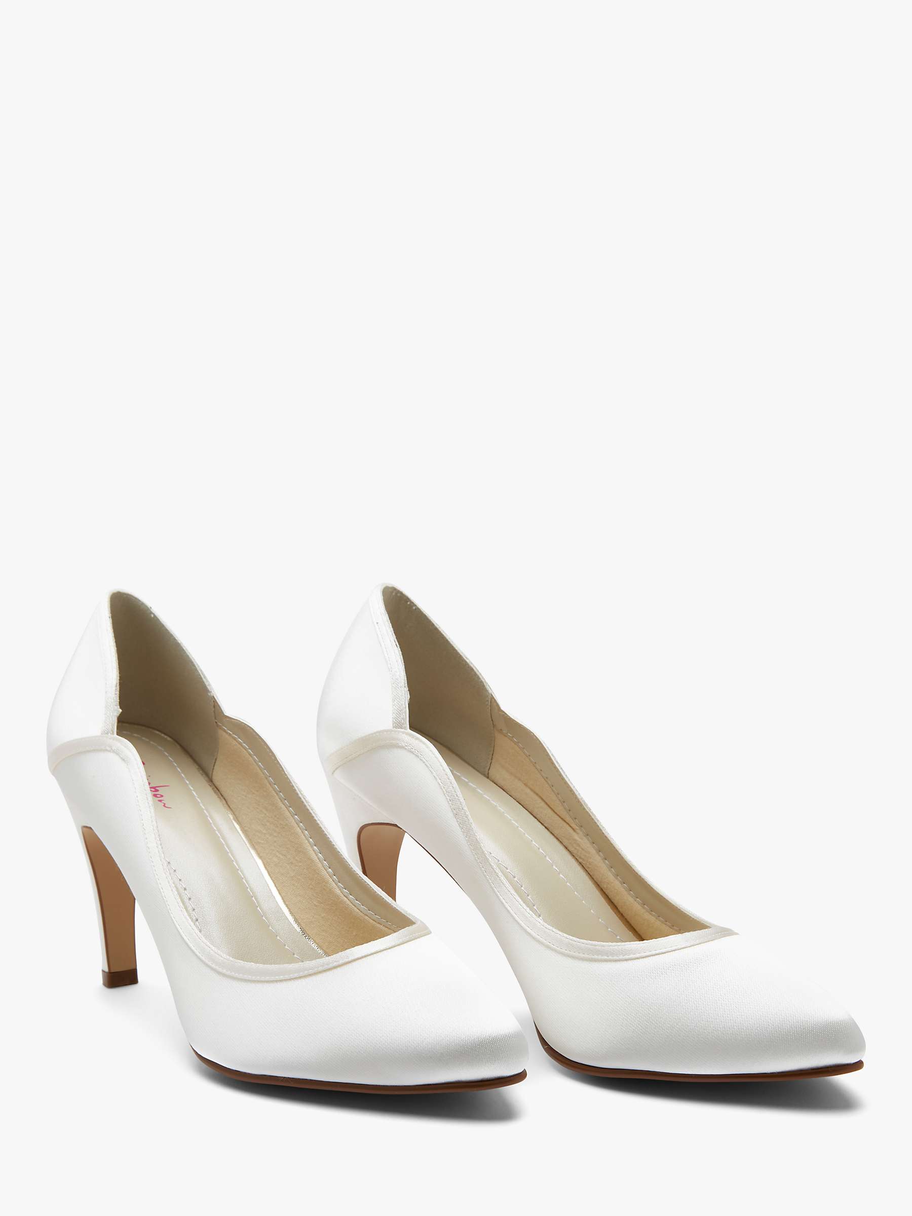 A classically elegant court shoe from Rainbow Club in satin with attractive vintage inspired curvy overlays