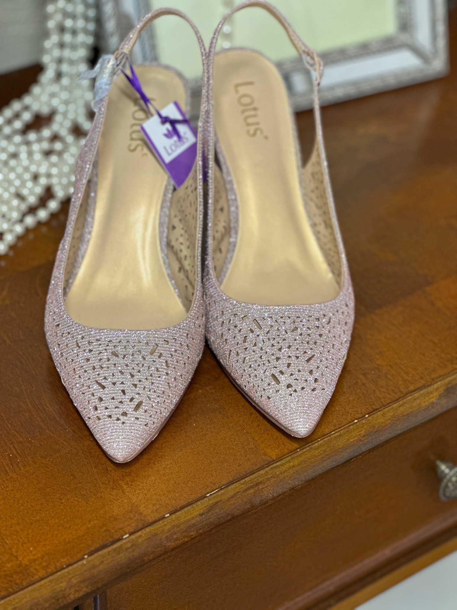Home / Shoes & Bags / Shoes & Bags - Occasion Wear / Lyla Shoe - Pink TextileCrafted from a shimmering textile, the Lotus Lyla court shoe is an exemplary style that will add the ultimate finishing touch to fabulous dressy looks. The soft pointed toe is complemented with a slender adjustable slingback and a 9cm stiletto heel. But it is the intricate laser cut our detailing that is encompassed on the upper that gives this women’s pink court shoe a unique finish. This splendid detailing has also been replicated on the matching Lotus clutch bag Esmee.
