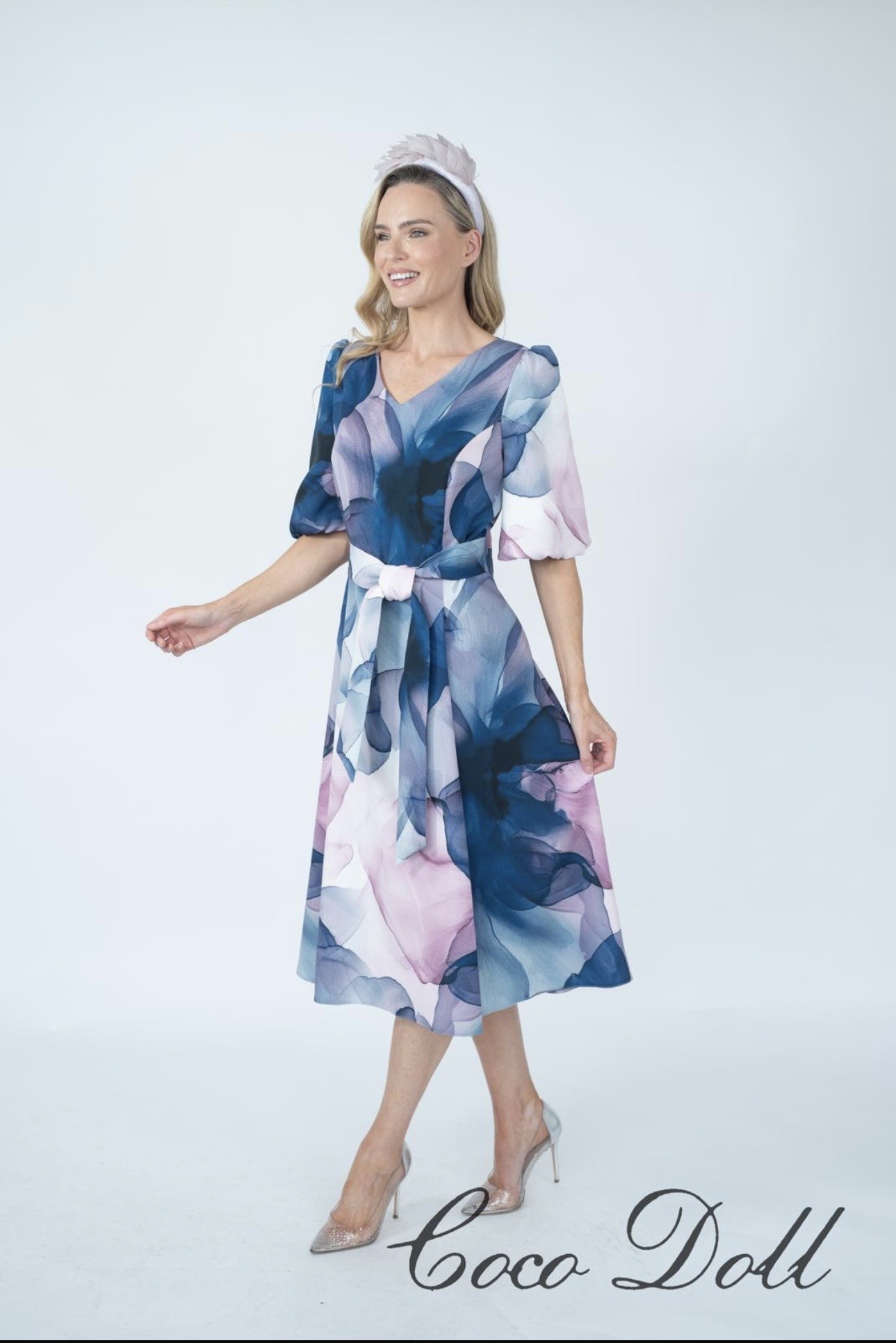 The Modi midi dress is a beautiful statement piece for any special occasion. With a flowing A-line skirt, this dress features a flattering V-neckline and softly puffed sleeves that add a touch of vintage-inspired charm.