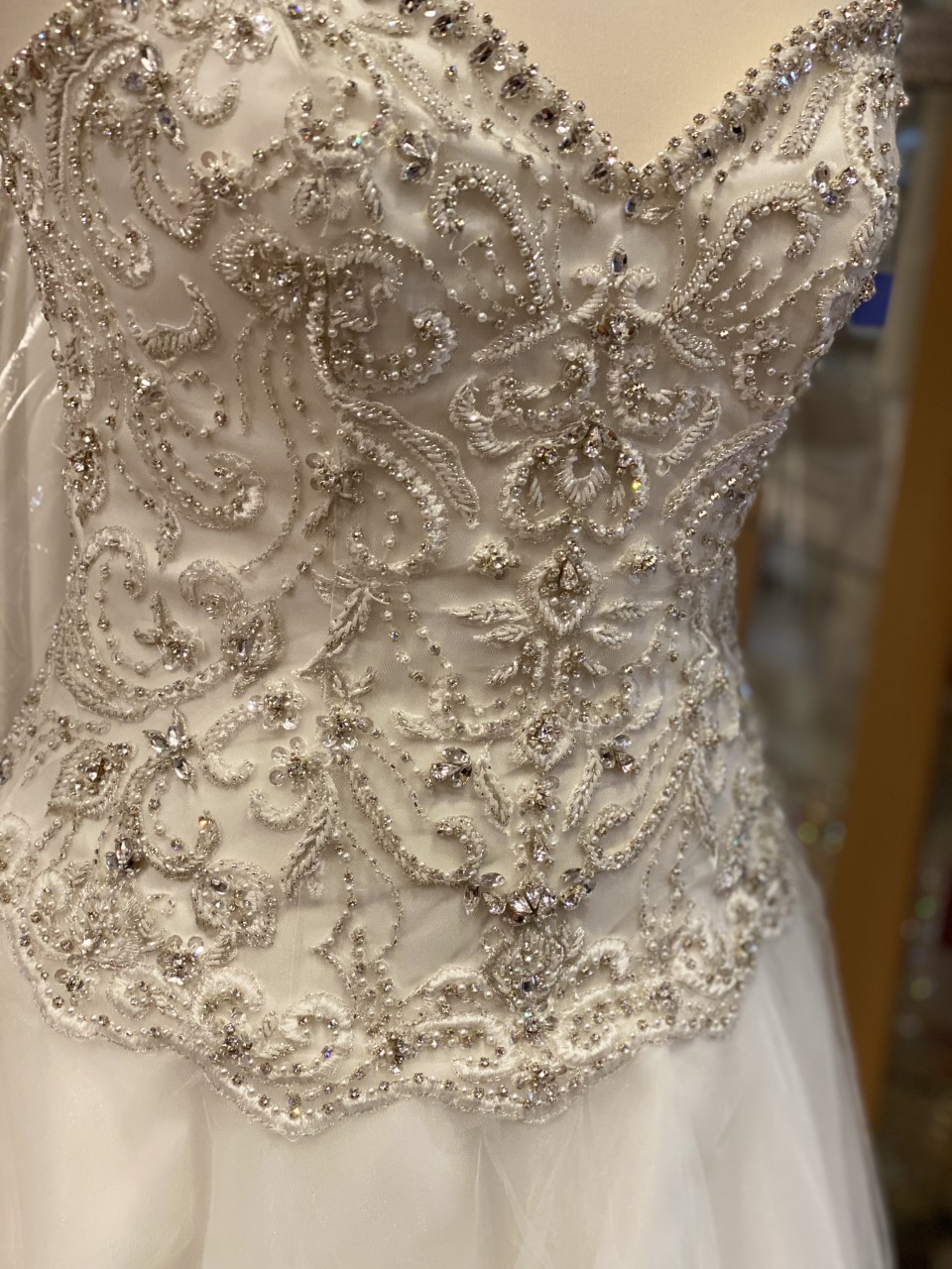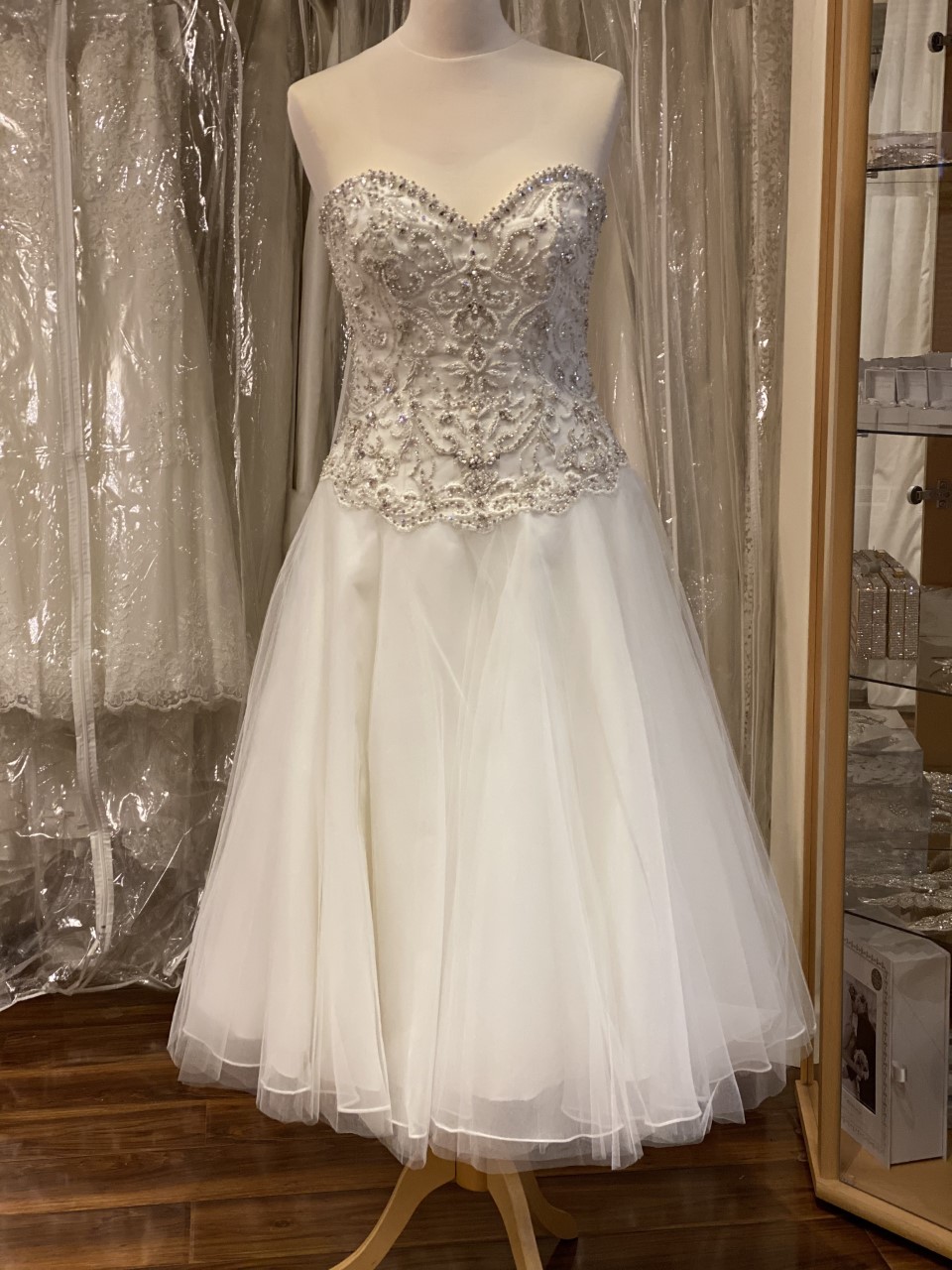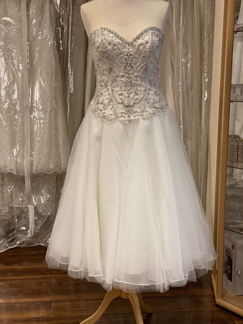 Morilee short wedding dress, stunning diamonte beaded bodice with tulle skirt