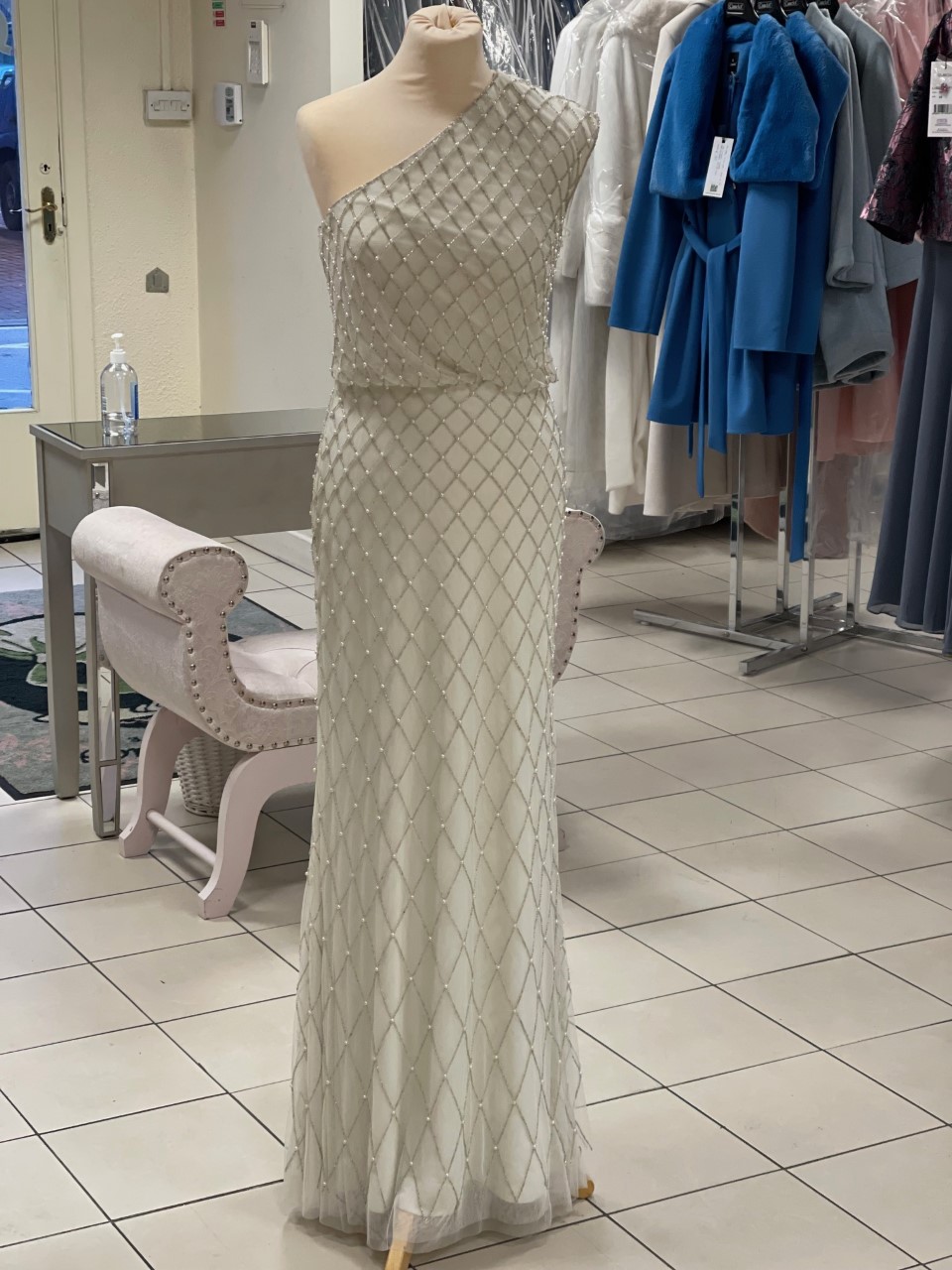 ||Another stunning dress, this time a fully beaded diamond ivory dress. Perfect for a ball or a debs