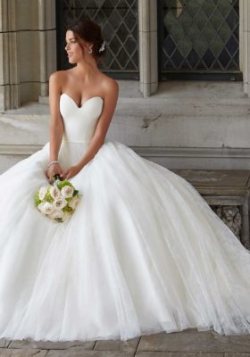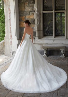 Home / Wedding Dresses / Morilee Wedding Dresses / Blu Collection Wedding Dresses / 5801 SHERRI Wedding DressesThe Sherri wedding gown features a strapless, sweetheart organza bodice on a floral printed tulle ball gown with matching organza waistband.